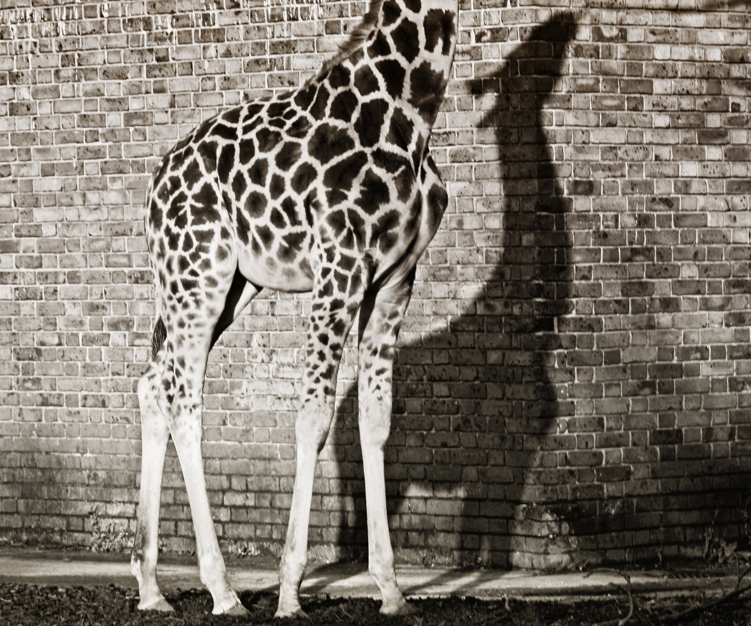 The Giraffe's shadow was captured against a brick wall which also shares its skin patten to enhance its "reality"