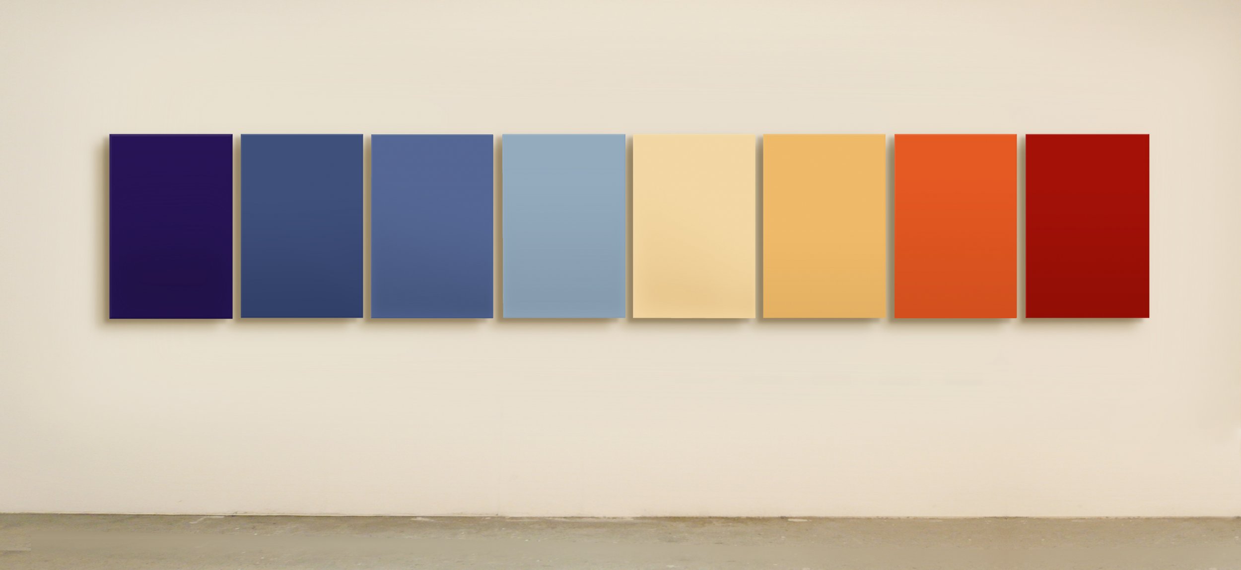 18:16:57" (Sunset) Installation, Abstract geometrical, Landscape, Various materials, 341x60x4.5cm Various materials colors sunset panels 18:16:57" is the exact hour a sunset produces this gradient of colors while happening. From deep purple to brilliant red as the sun sets Milan (Producing Censorship 2011) Added 14 years ago 5 I Like I don't like 2 Comments 282 Visits Share Facebook Twitter Google + Has been liked by 5 Costangelo Artist, Photographer, Street artist - Roma, Italy Gianpaolo Spagnoli Artist - Verona, Italy Giovanni Longo Artist - Reggio di Calabria, Italy Silvio Zangarini Artist - Torino, Italy Davide Barbanera Artist - Città di Castello, Italy Comments 2 13 years ago Marta Cristini Artist anche questa.. davvero bella ed evocativa 14 years ago Davide Barbanera Artist Beautiful! Say something You must login or Sign Up to write a comment Join