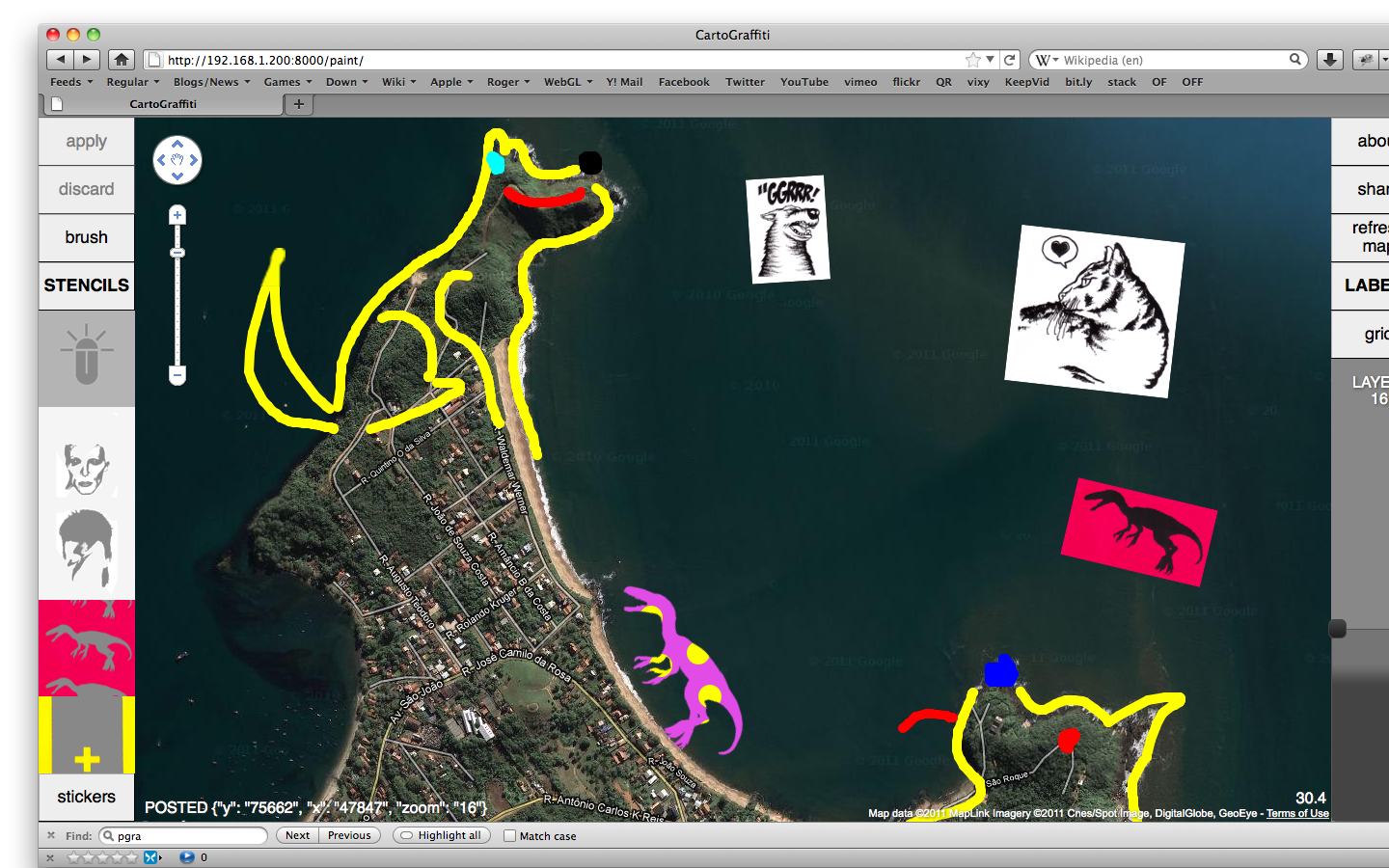 Pick up a location from Google Maps and make your art, with brush tools, stencils and stickers.