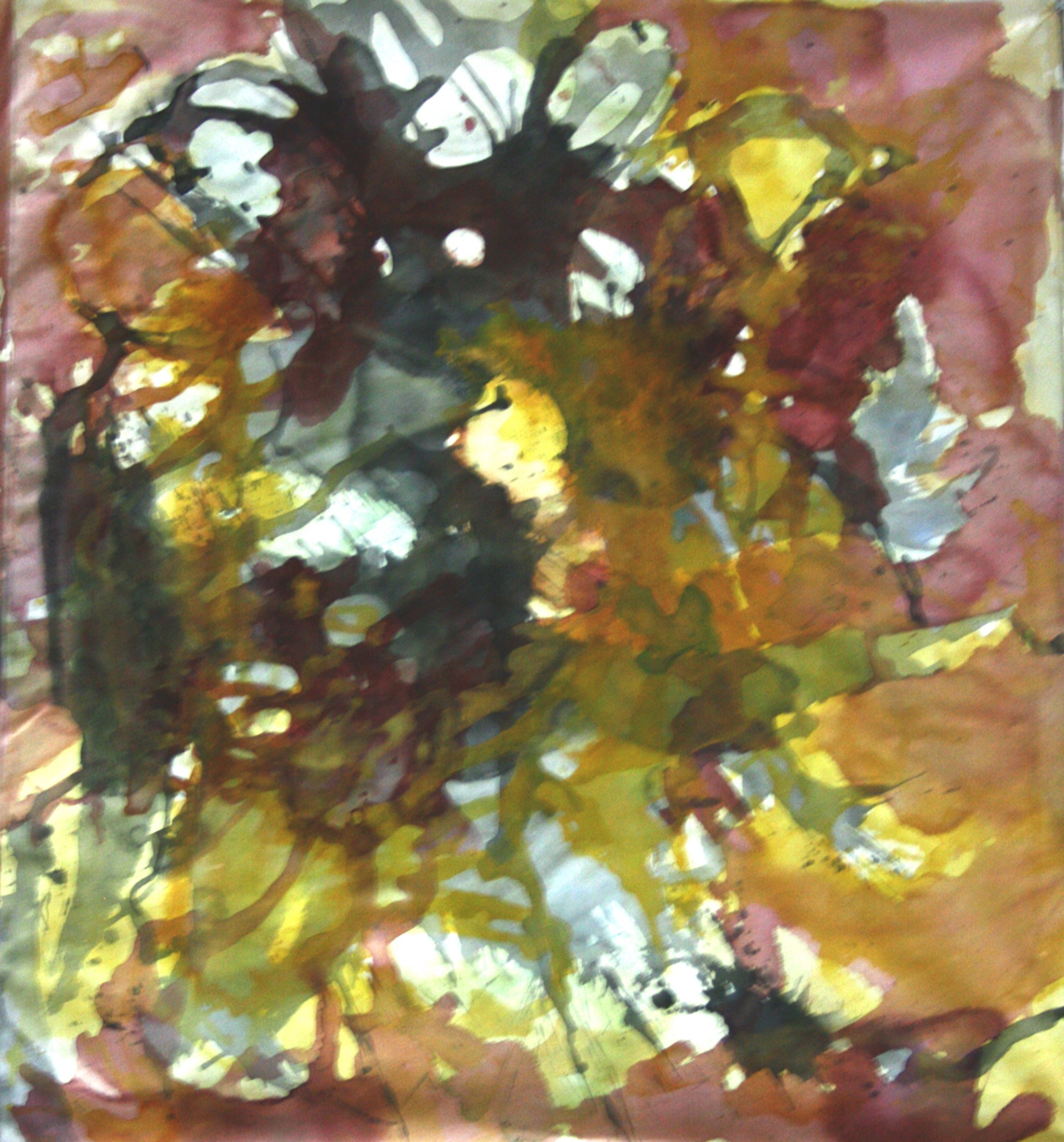 I use extremely thinned paint through layers and layers powuring and brush working on canvas created a effect of light and shadows, shapes and mark makings. Each mark and each path on the canvas looks so random, incidental, but they are not random nor incidents. I lead, draw, spread the paint into forms and shape with my desire, thoughts and feelings and in the process I feel and learn more about myself and understand more.