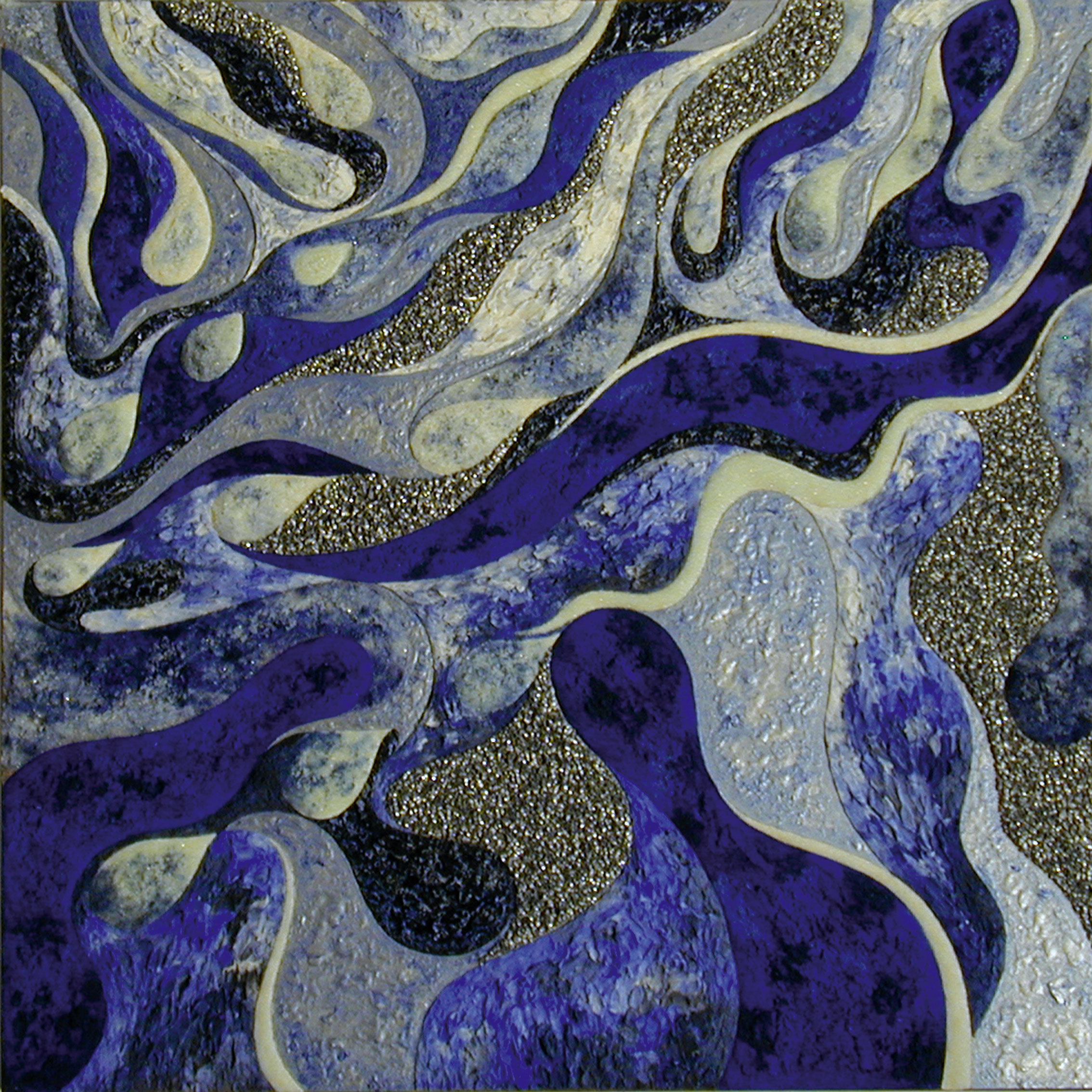 Bas-relief with aluminium, wood powder, glass microspheres, luminescent pigment.