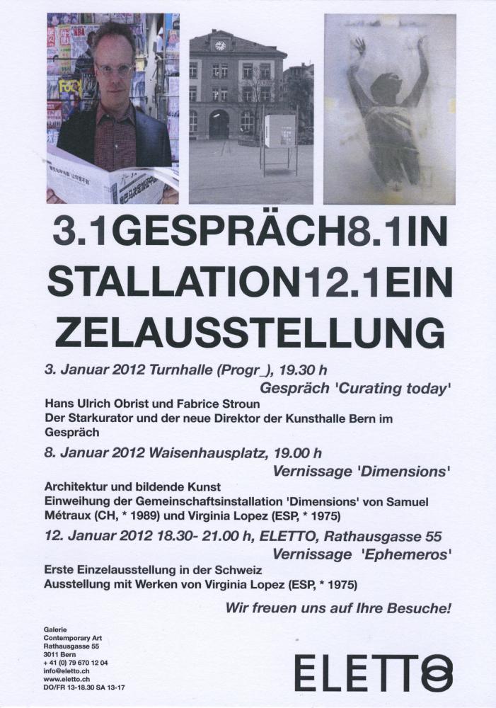 The exhibition 'Ephemeros' presents a series of works which deal with the notion of time and transitoriness. Lopez defines art as an eternal substance even though it decays constantly. 'Ephemeros' talks about nature and its cyclic rhythms, about dense and still water, which represent a deposit for our memories and a place for our dreaming in a vague time full of confusion. The exhibition manifests its concerns through the applied materials, since they are the original holders of time. Wax as an organic and metamorphic material, which is constantly exposed to transformations, and the ancient method of photographic print are used to represent a reflection about art, time and memory.