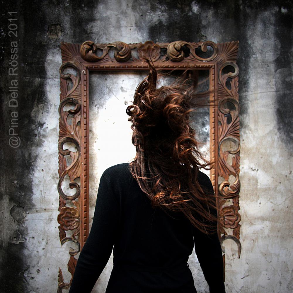 With an adept skill, the artist Pina Della Rossa express the effort of a journey in the soul. Her shot does not fix a moment but communicates the dynamism and the instability and so doing she gives form to the darkness and depth existing in the mind. The work shows us a prospective and bilateral vision of a body seen neither in front nor from behind. The woman in the picture has lost her physicalness, losing her power in the surrounding darkness. A hunted world is created by the contrast between lights and shadows. What is left of the human figure is just the superimposing of the two levels of foras and intus. The woman goes beyond and pre-determined life and takes her beyond the phenomenon reality. This is the beginning of the eradication and the form and the meaning lose their stability, they become short and authentic. The spirit travels through images and symbols thanks to which it is possible to get in touch with feelings and sensations, in a word with the dionysiac passions. The soul is divided into small units without any logic and gets lost in the boundless world of the conscience. It represents the madness of the new meanings, the mad liberations from any trouble. The human being is at last himself, fred by any masks. It is Madness itself that allows the soul to search its real vultus. Now it will be possible to go beyond the wall, beyond the contradictions of life, reaching its real meaning, that daimonas, δαίμονας che is inside any human beings. Truth will be watched over by new eyes that have leant that often only scrutinizing inside we can have a glimpse of life.