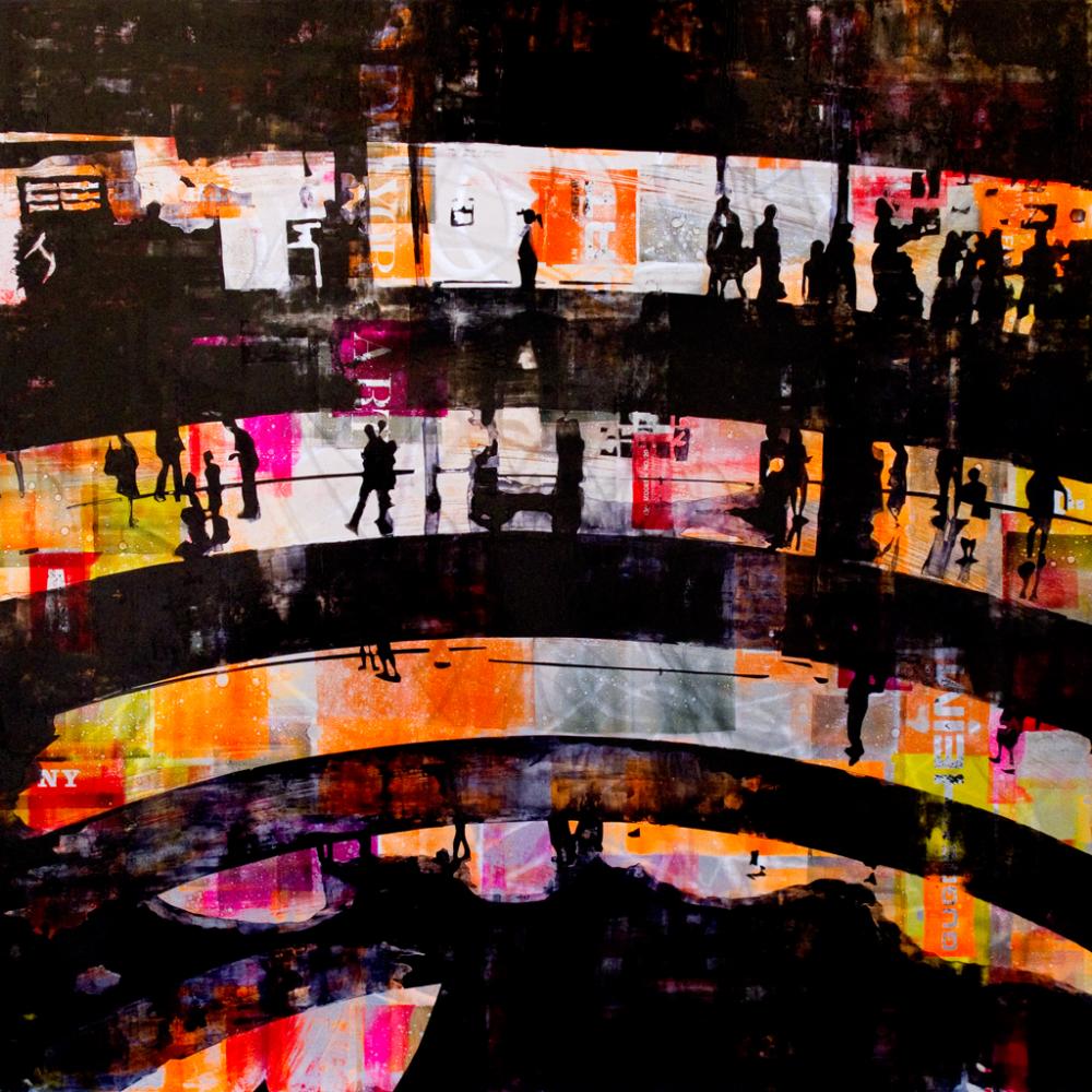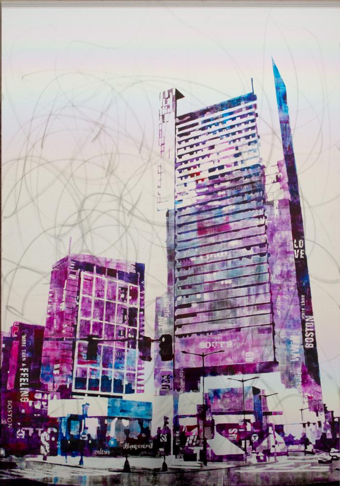 Bellanca’s work represents Italy’s experimental side, one for all the world to see. Many paintings portray cities like Boston, New York and Vienna, where the foundation of their architecture and the physiognomy of their people become a source of inspiration for the artist. He uses a combination of art and technology; in his works, metallic shadows and brushes of color give new birth to the consistency of reality.