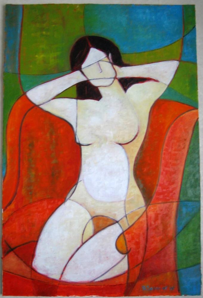 L’attenzione principale dell’artista si concentra sulle figure femminili, spesso solitarie, con la sensazione di cogliere un atto sospeso, uno sguardo che si sofferma solo il tempo necessario per esaltare i corpi flessuosi e le linee destrutturanti, quell'attimo necessario a fissare l’istante sulla tela. Figure che emergono da uno sfondo indistinto come apparizioni, spazio vibrante percorso in tutte le direzioni da coordinate spaziali, linee di forza che raccolgono un’esplicita sensazione di movimento.