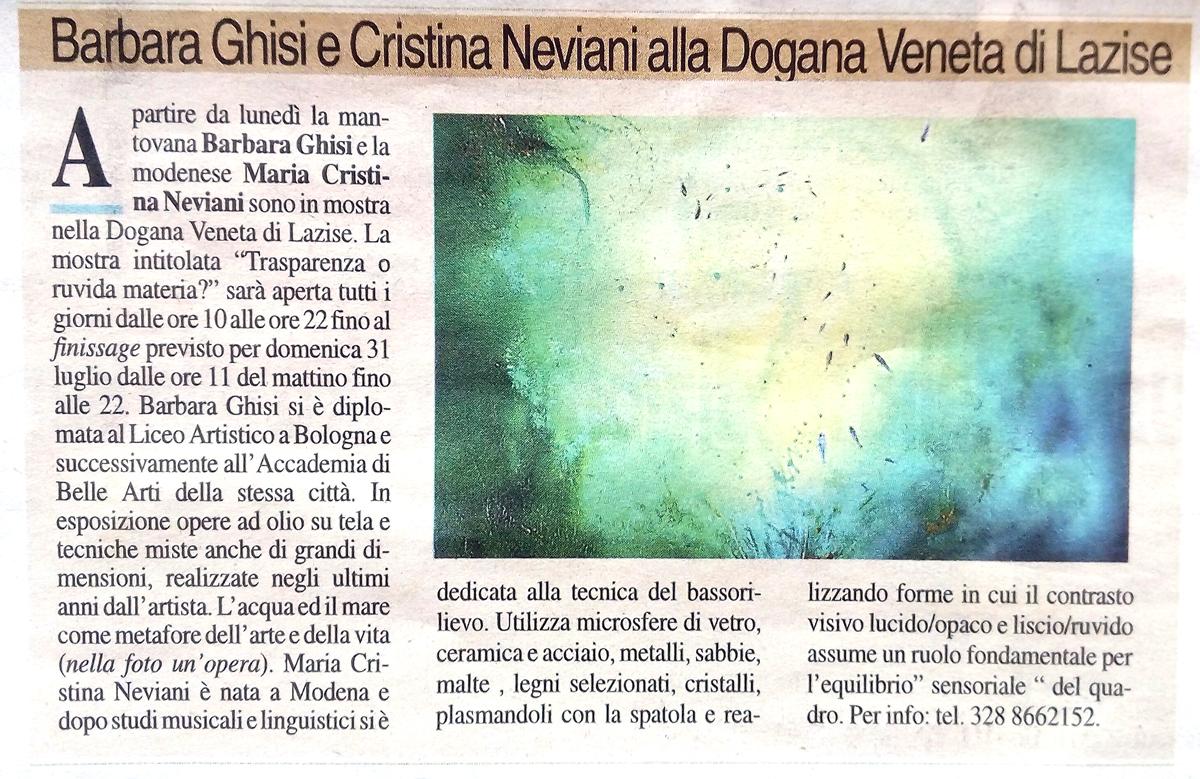 Exhibitions, Italy, Verona, Lazise, 25 July 2016 Added 9 years ago 5 I Like I don't like 8 Comments 153 Visits Share Facebook Twitter Google + Say something Comments 7 9 years ago Agatino Furnari - Mess Artist Congratulazioni un grosso in bocca al lupo!! 9 years ago Barbara Ghisi Premium Artist Grazie a tutti amici. Veniteci a trovare sul lago. 9 years ago Maristella Angeli Artist, Painter Congratulazioni ad entrambe! 9 years ago Cat Photographer Auguri ! 9 years ago francesca furin Artist Complimenti ad entrambe!!!! 9 years ago Teresa Palombini Artist Auguri a tutte e due!! 9 years ago Lino Bianco Artist Bravissime! Un bacio. Lino Say something You must login or Sign Up to write a comment Join