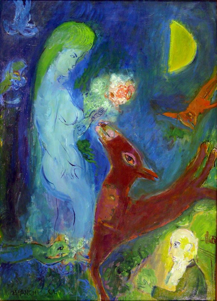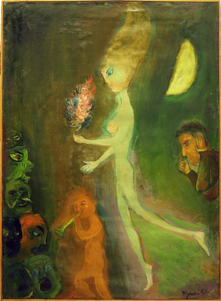 He was careful and constant searching of the human soul in its most intricate folds through a figurative painting style tended to find strong and contrasting colors, influenced by the expression of Ensor and fairytale themes of Chagall.