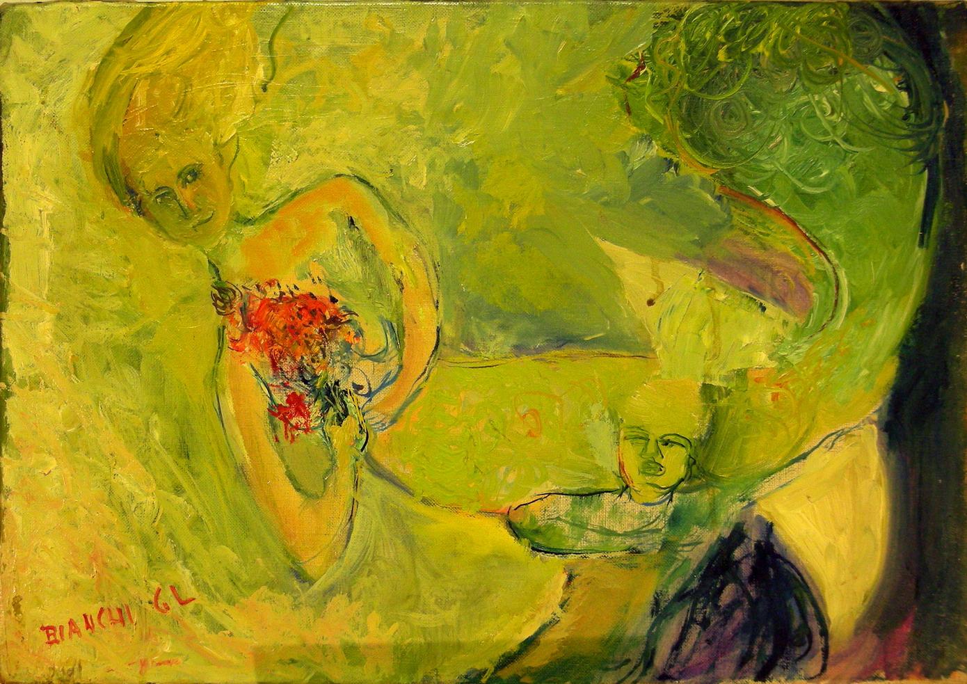 Bianchi In fact, the preparation of pictorial material, through the dream, the bright colors, often violent, are alarmed about the state of the world, moral decay and a real need for salvation. Inner suffering and the resulting human-reflection, the figures generated by a macabre seductive and sinuous projection of a reality helmet but this dramatically and, secondly, a meditative catharsis, search for safe and comforting images of reality along with their loved ones.
