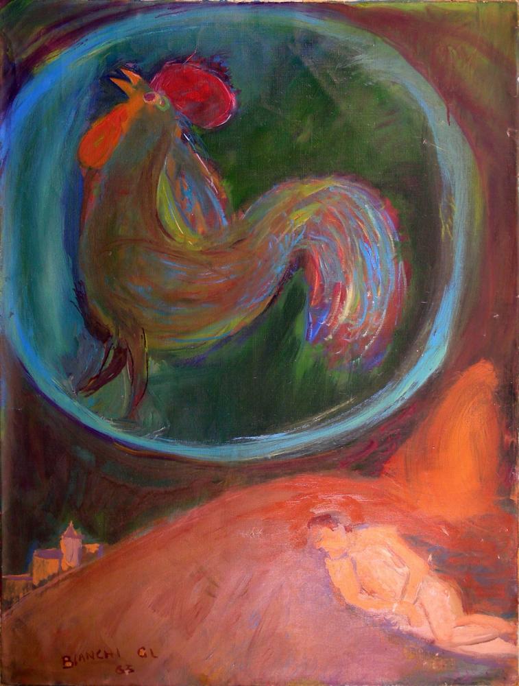 Oils on canvas, tempera, watercolors, charcoals, ink and pencils in different sizes and, for the drawings, in some cases, implemented on both sides of the sheets, were the creative tools used by Whites to recount the stages poetic, introspective and dramatic of its existence. Emerged five different issues related to emotional and expressive moments of the master: death, outlined in dances sarcastic, deformation and diabolical dream that devastate and inflamed world heavy with sin and blindness of the heart, the human soul, which is described in its silences, in deep meditation, travel foreignizing mental and introspection of the newspaper that relate to reality, portraits, where he has ample self-portrait, and observation of different female figures caught in their own silent meditation and the insulation intrigued by the fact ; the animals, whether fast, safe and accurate, including emerging and alter the princely fowl or raw and bloody carcasses of slaughtered animals. Finally, the strand definable Bible, which, in part intertwined with that of death, brings out predominantly in the sensitivity and dramatic eschatological and Christian Bianchi, tense, for all thirty years of his painting activity, the relationship between created and its end, between destiny and fulfillment, between death and dream.