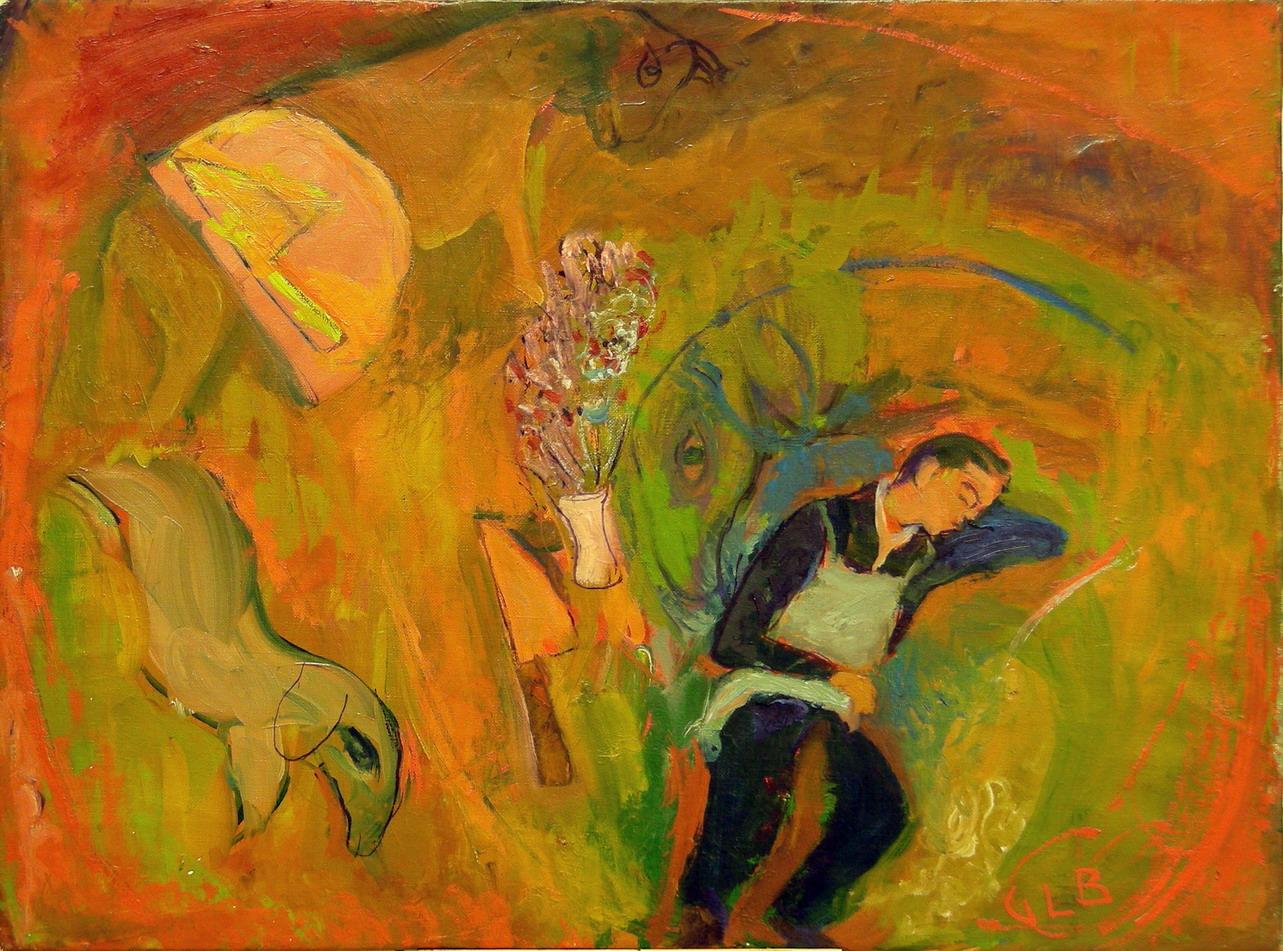 On the other hand, the creative process is inspired by the landscapes of eastern Liguria and Lake Maggiore, where in the long stays, rediscover the joy away from the existential drama, through a redemption of the soul, and a simple search of the purity of the newspaper . The nature, the countryside, the sights of spring hill, religious traditions, the portraits of relatives and friends, and curiosity about the serene relaxation of the sea bathers continue the dream of the same creative passion.