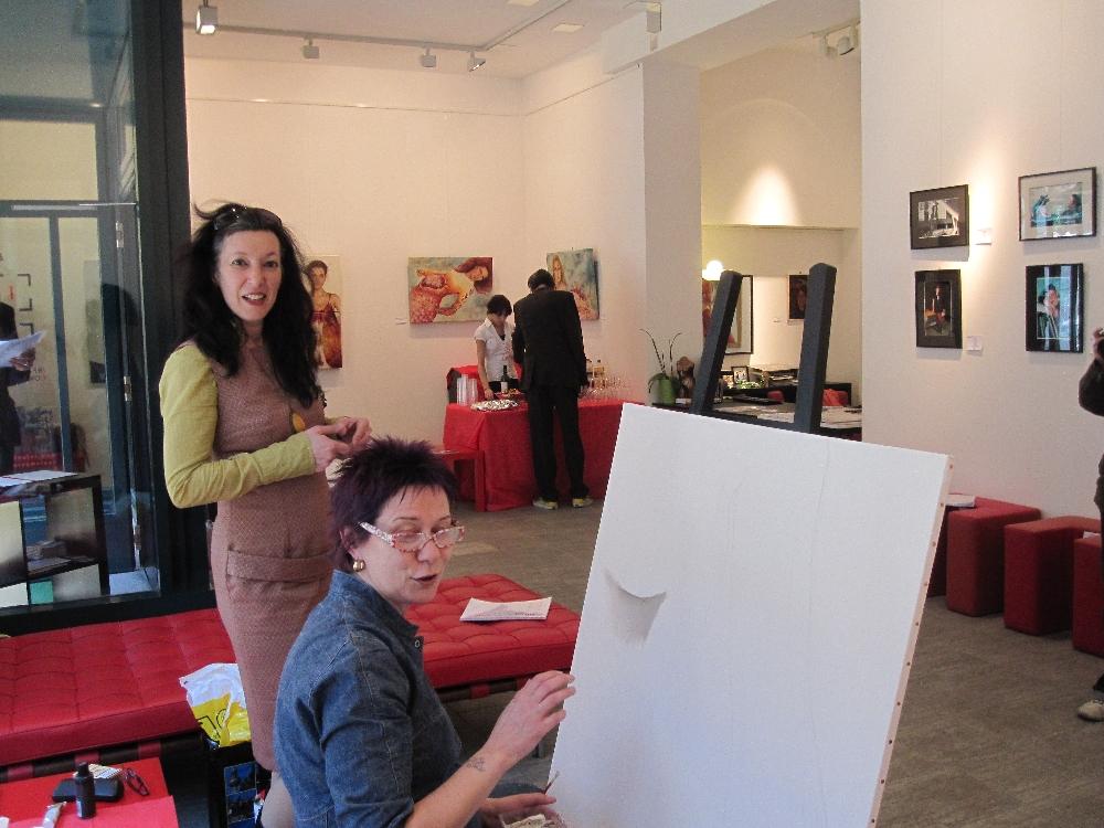 Malerische Performance von Ettore Bentivoglio während der Vernissage.