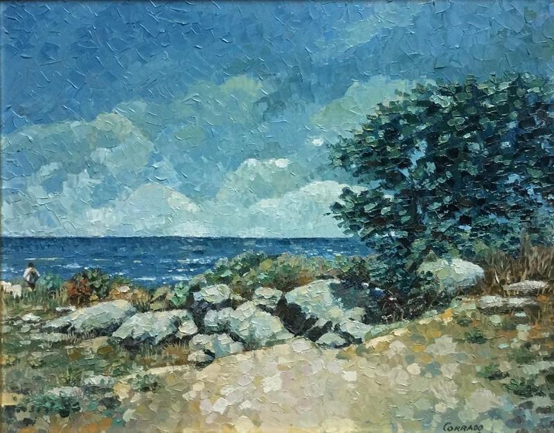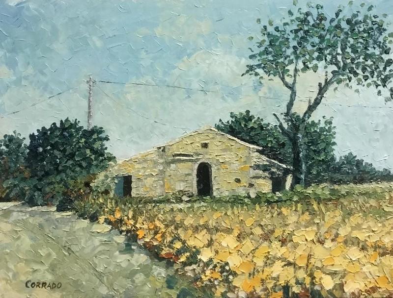 Mimmo CORRADO nato a Mileto(VV) nel 1947 ha poi conseguito nel 1968 il diploma di maestro d’arte e nel 1973 quello di maturità artistica. Inizia l’attività in Argentina nel 1962, continua poi in Calabria, a Milano, ancora in Calabria e attualmente a Pisa. Padrone delle varie tecniche espressive, dipinge prevalentemente a spatola i vari angoli della sua terra con grande amore e passione. L’impronta evocativa del colore e della luce, che a volte tralascia gli schemi pre-definiti della composizione, esprime chiaramente una personale, riflessiva e consapevole sfida estetica della realtà, utilizzata, non solo come elemento di narrazione, ma come meditazione oggettiva del proprio mondo interiore, degli stati d’animo e con singolare efficacia di lirica interpretazione espressiva. Le sue rappresentazioni sfociano in un contesto pittorico ricco di sottili vibrazioni, dove le forme, tramate con delicatezza da sapienti, sicuri e precisi colpi di spatola, ricreano forti e sorprendenti emozioni visive. Lo stile originale fa emergere, nella sua pittura spesso gestuale, le sue eccellenti doti di sensibilità cromatica e comunicativa e un personale mondo pittorico ricco di coinvolgenti suggestioni che scandiscono il tempo. I soggetti spaziano dai paesaggi, dagli scorci di paesi ora calabresi ora toscani, dalle nature morte, ai ritratti e ai personaggi colti negli atteggiamenti più spettacolari ed espressivi strappati alla quotidianità.