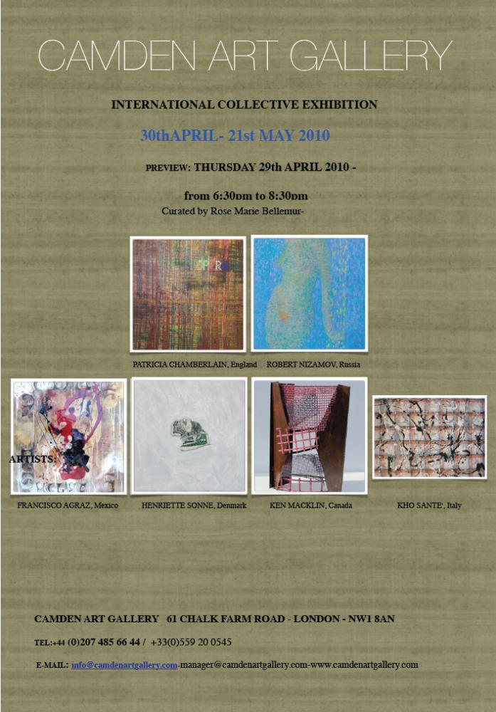 Exhibitions, United Kingdom, London, 30 April 2010 International Collective Exhibition in Camden Art Gallery, London, England Added 15 years ago 0 I Like I don't like 0 Comments 63 Visits Share Facebook Twitter Google + Comments 0 Say something You must login or Sign Up to write a comment Join
