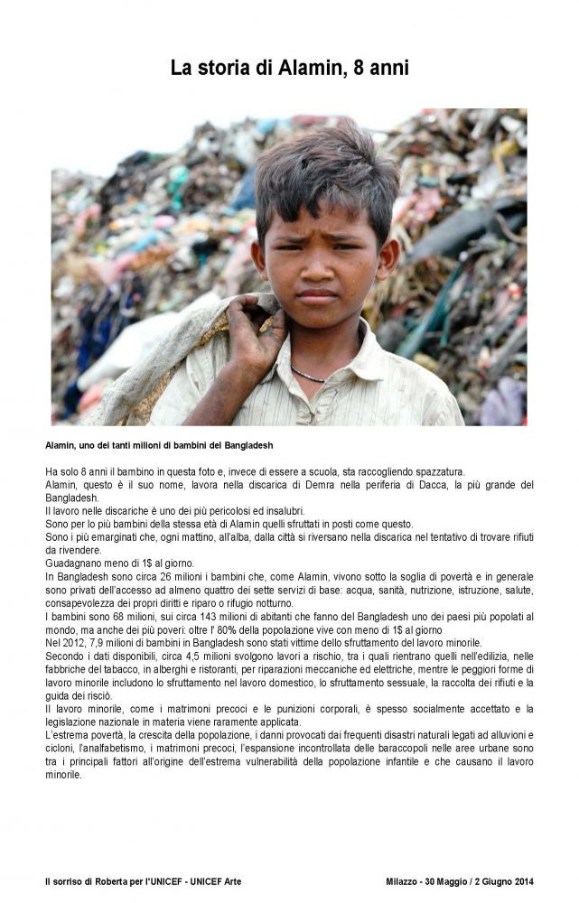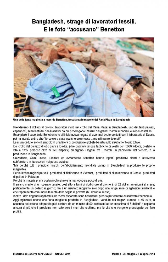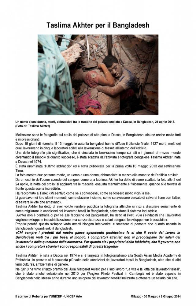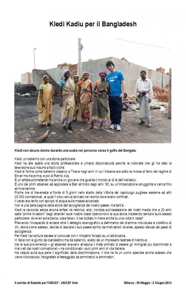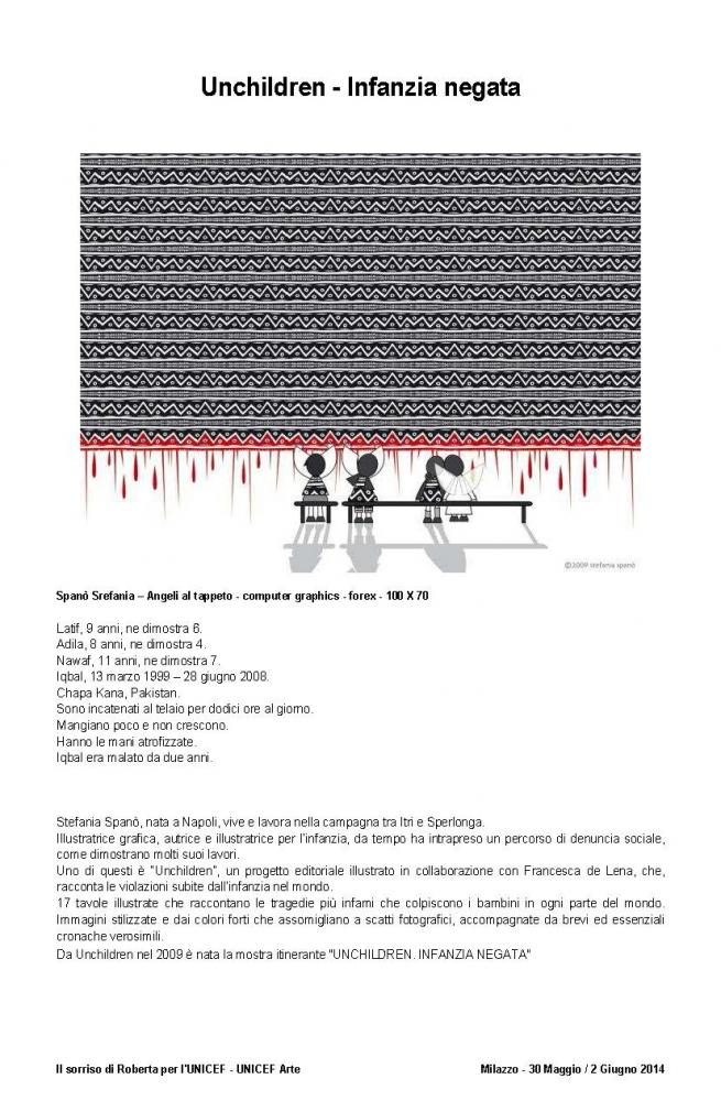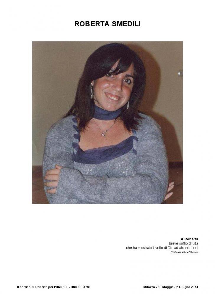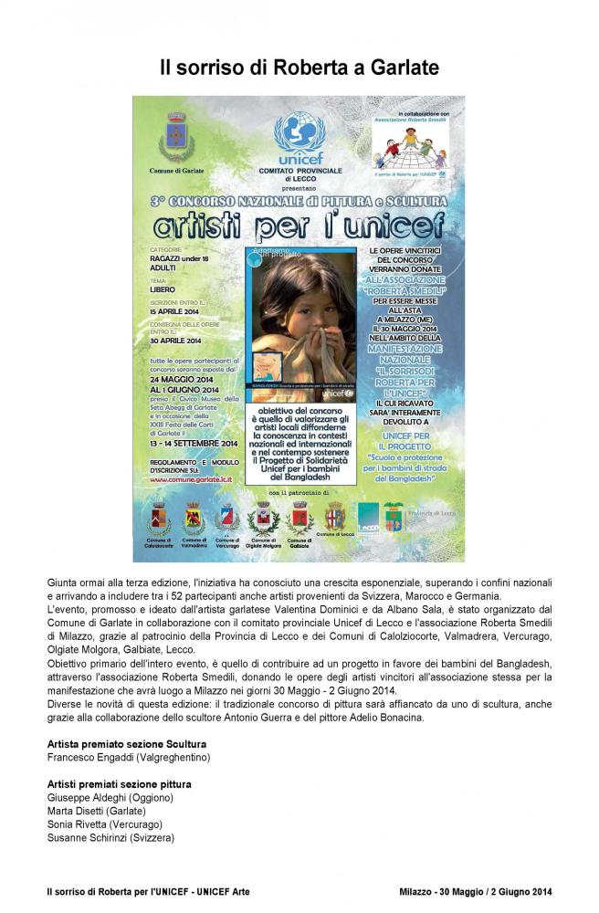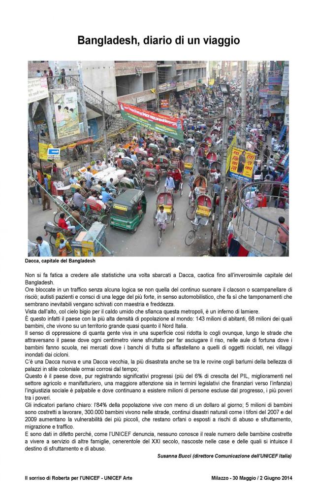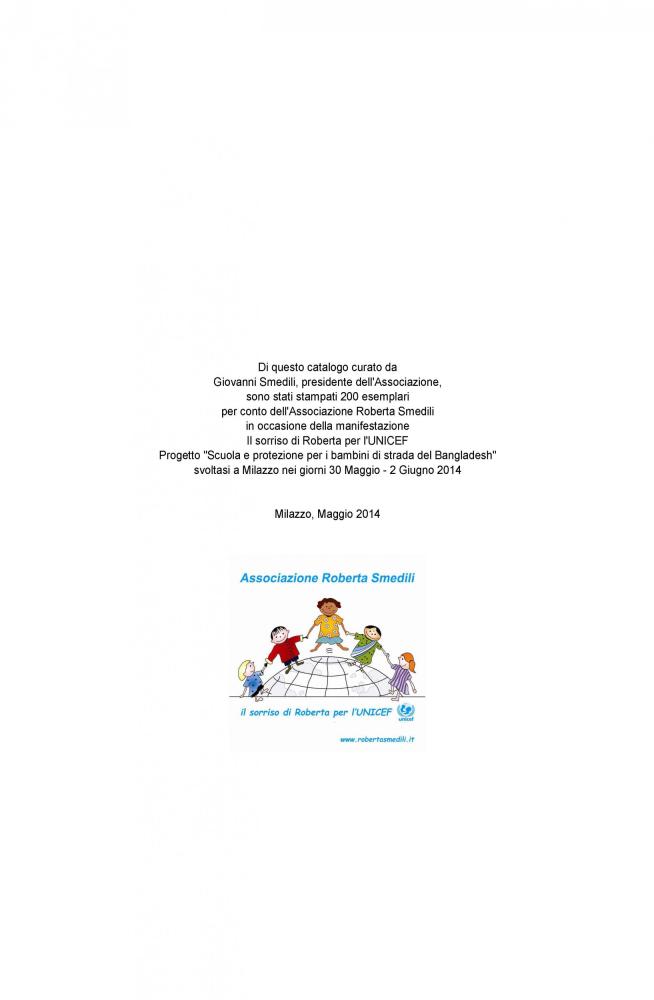 The official brochure of the "100 painters and Roberta's smile", as part of UNICEF project "School and protection for street children in Bangladesh" held at the Paladiana of the City of Milazzo on days 30 May to 2 June 2014 .