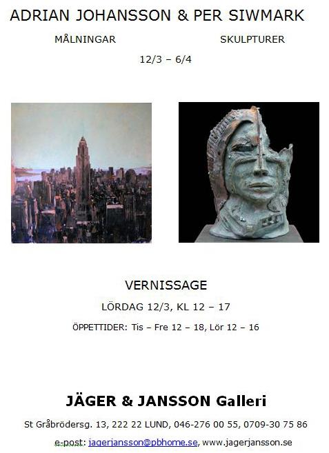 Exhibitions, Sweden, Lunds Kommun, Lund, 12 March 2011 An exhibition with 20 of my sculptures at Gallery JÄGER & JANSSON in Lund, Sweden. www.jagerjansson.se Added 15 years ago 0 I Like I don't like 0 Comments 98 Visits Share Facebook Twitter Google + Comments 0 Say something You must login or Sign Up to write a comment Join