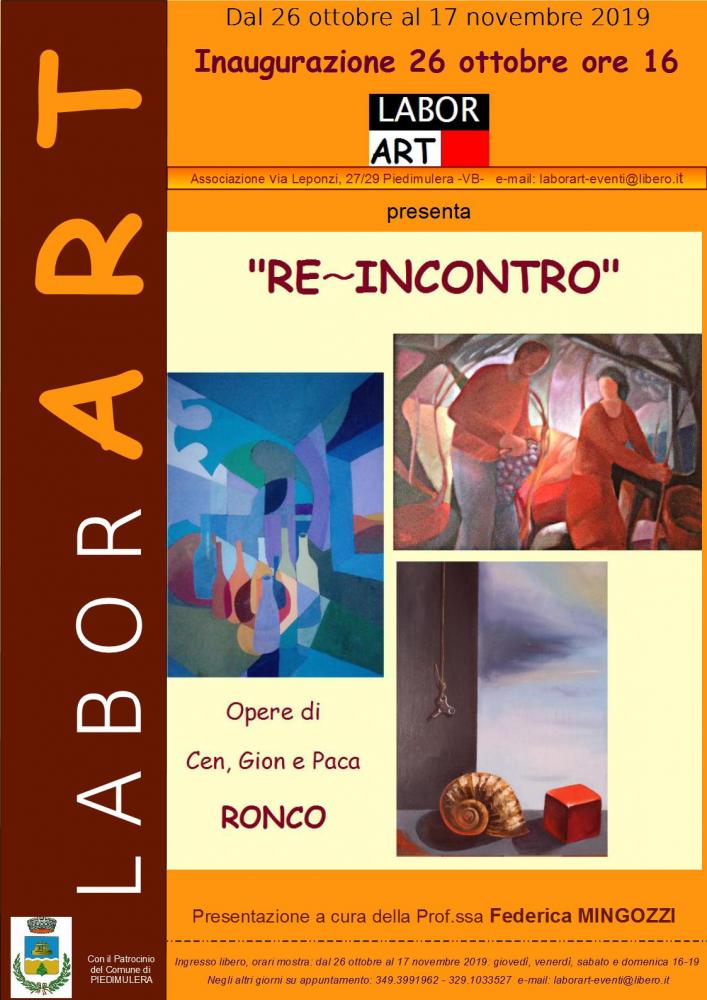 Three brothers, three artists, Cen, Gion and Paca Ronco, who grew up together "centuries ago" in Turin but for years away geographically and by paths, today together in a single exhibition, with amazement, with differences that enhance their personalities.