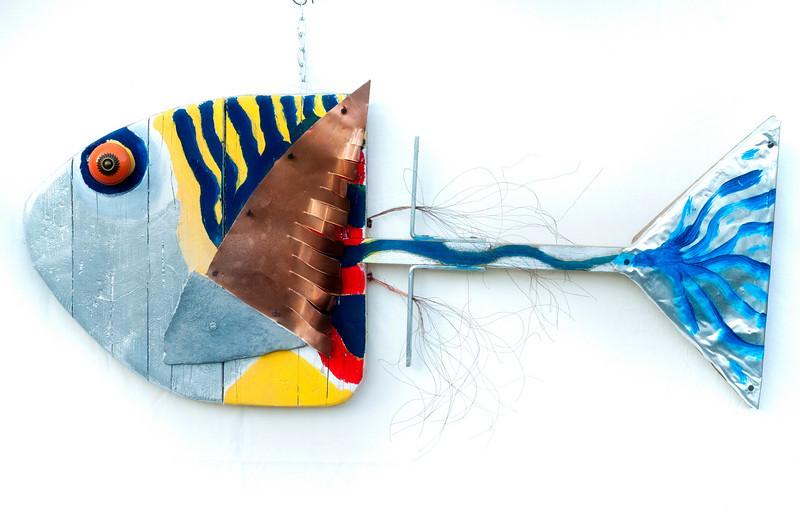 Manuela Manes and Simone Perotti sculptures are made with recycled wood raised on the sea and other materials.