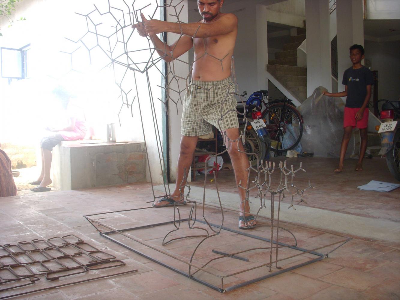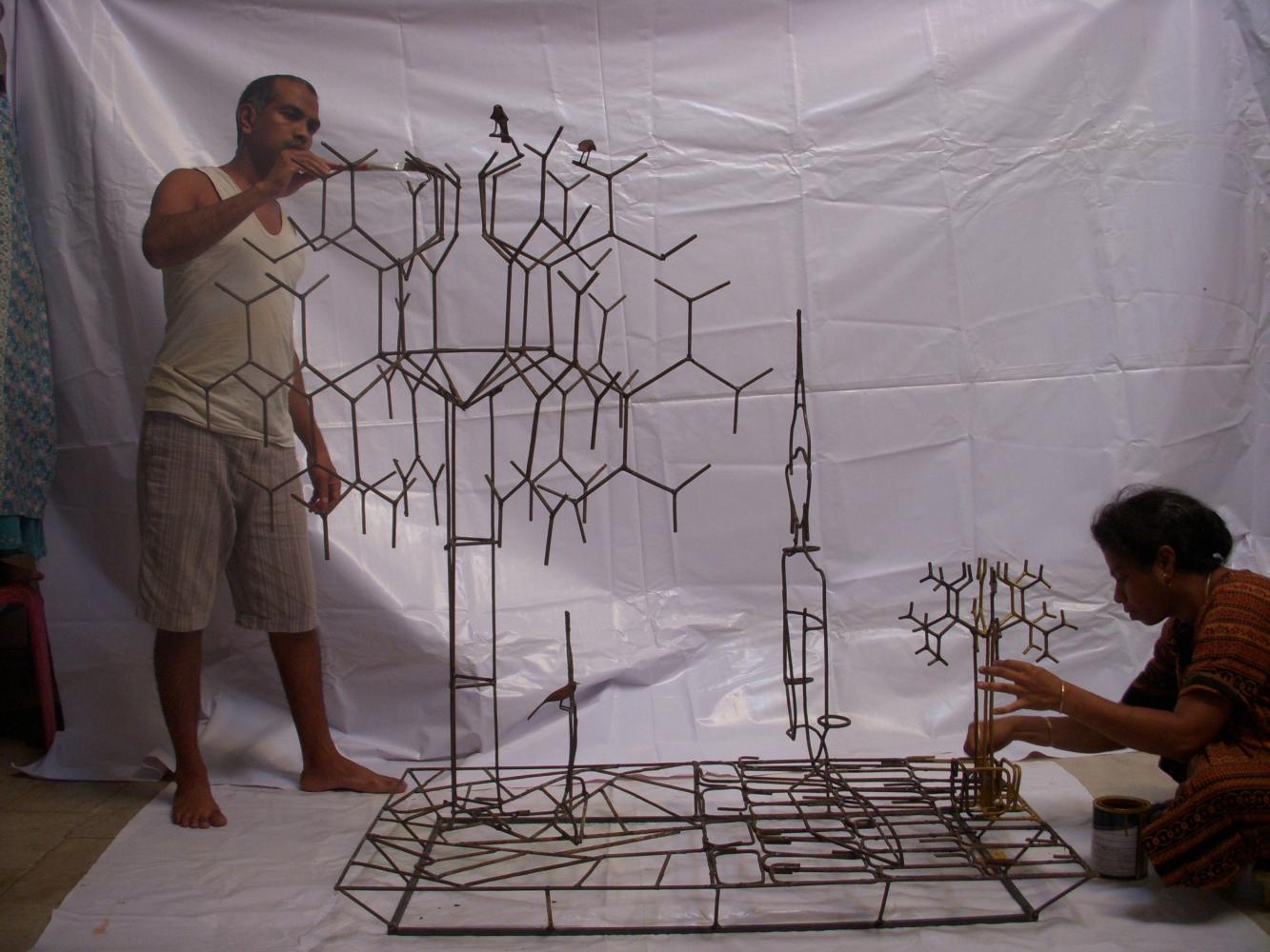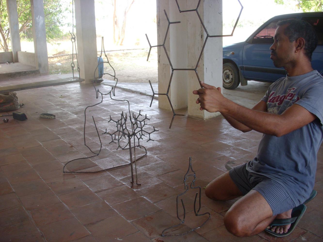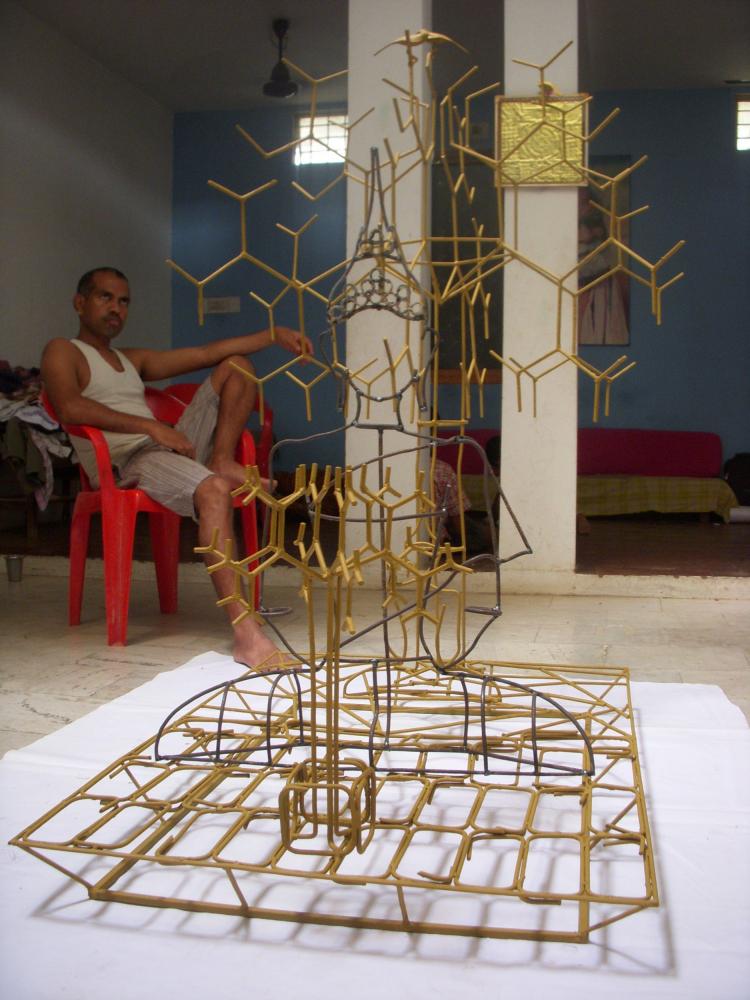 The bigger Buddha will be done with some wheels and other machine junk spares to depict the mechanical life of the human now.