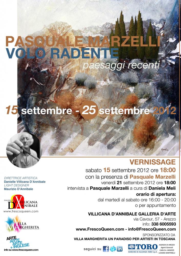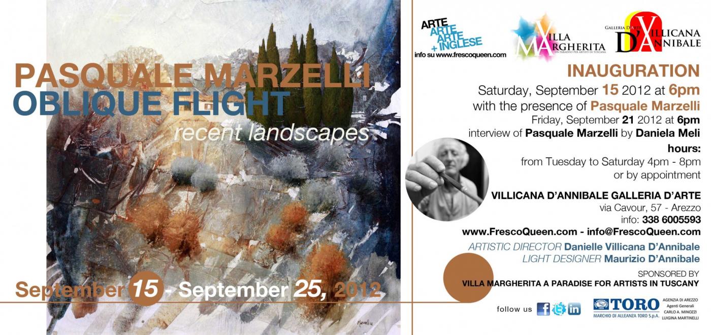 Saturday, September 15, 2012, at 6:00pm, the Villicana D’Annibale Galleria D’Arte of via Cavour (Arezzo) will inaugurate the exhibit of painting by Pasquale Marzelli, entitled Oblique Flight. The exposition, curated by Californian artist and gallerist Danielle Villicana D’Annibale, will host a selection of recent Tuscan landscapes by the Aretine painter. The exhibit will continue at free entrance until Tuesday, September 25, 2012. Amongst the events offered during the exhibit, on Friday, September 21, 2012, Marzelli will be interviewed by art historian Daniela Meli.