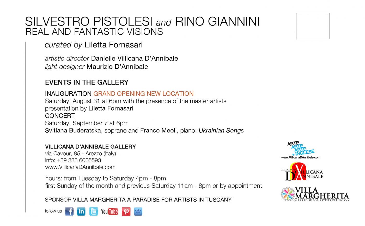 The new gallery will be inaugurated August 31, 2013 at 6pm, with the exhibit of two noted Tuscan masters – painter Silvestro Pistolesi and the sculptor Rino Giannini – entitled The real and fantastic visions. The exposition, curated by Liletta Fornasari, will continue free of entrance until Tuesday, September 10, 2013.