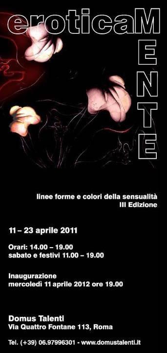 The exhibition aims to tell the Eros understood as a driver of creativity and artistic existence in general, in a poetic way of varied styles, techniques, trails, passing through painting, sculpture, photography, 'digital art, installation, video.