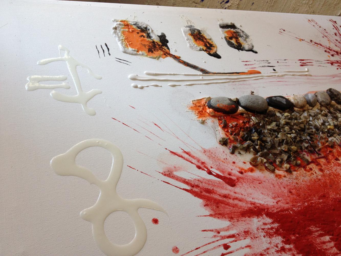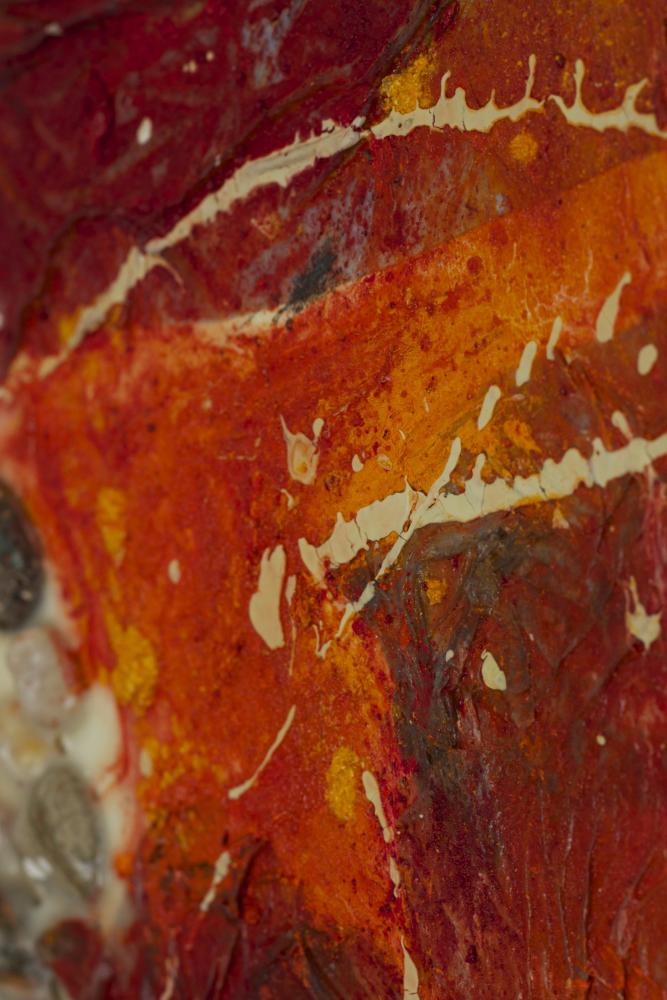 The works on show translate into painting the lines of the book and are accompanied by a short film showing the journey of initiation of the Queen of Sheba who crosses the Basilicata from the arid landscape of the badlands to the castle of Monteserico, to meet the wise Solomon. The route is characterized as a process of crisis and change accompanied by the warm gusts of wind Scirocco.