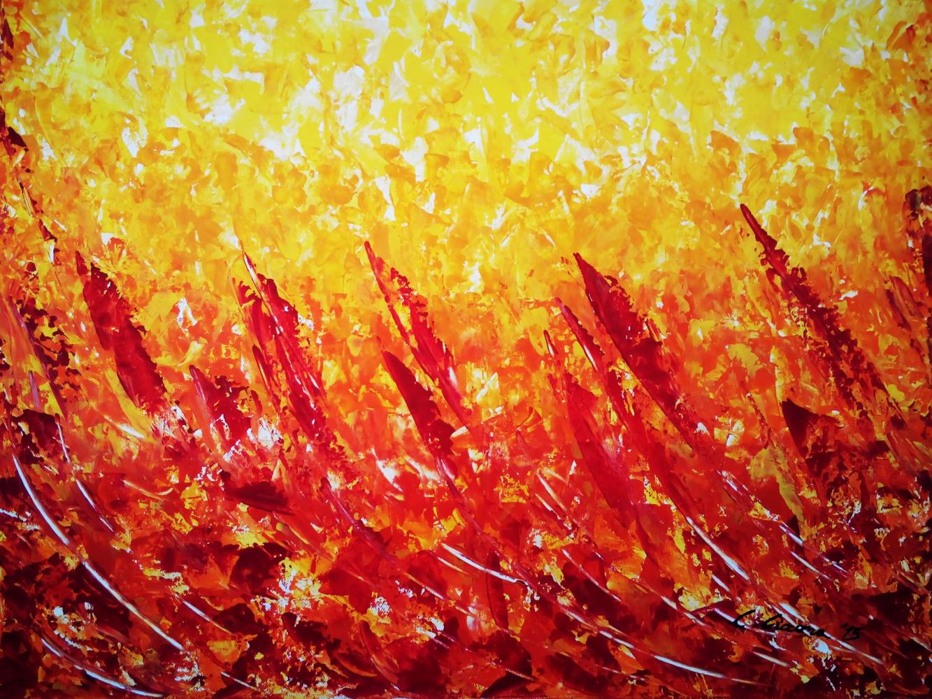 I also participate with "Rocheville", acrylic and metal leaf on canvas, 50 x 70 cm, 2002 and "Fire", canvas spatula acrylic, 50 x 70 cm, 2015.