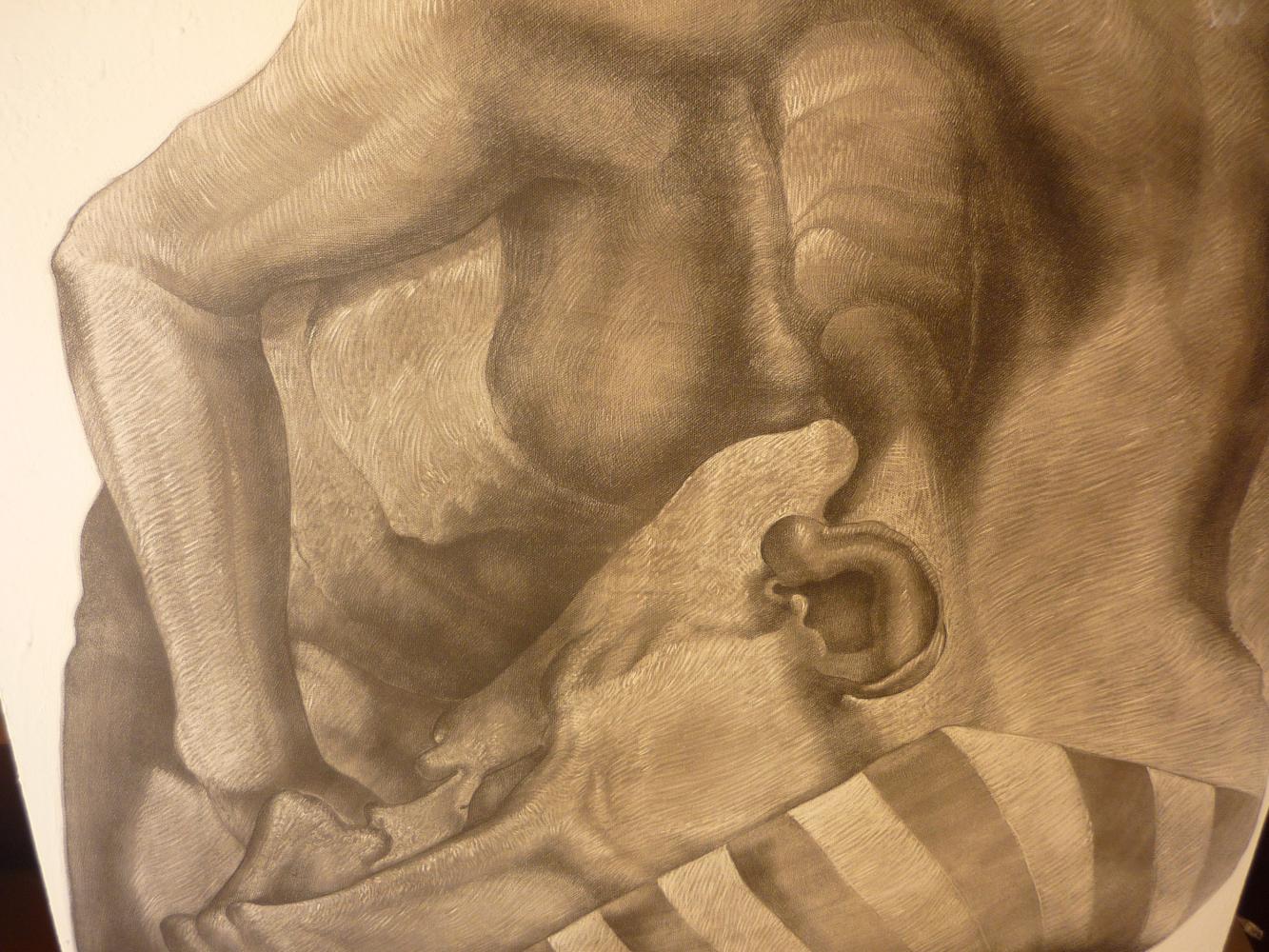 Pasquale Russo Maresca, artista di raffinata poesia visiva, ha nelle mani il coltello insanguinato del creatore e non si cura di tagliare solamente e sommariamente. O di scappare prima che qualcuno lo incolpi dello scempio. Di tutti gli omicidi dell’identità. Perché vuole incidere il suo urlo nel magma della materia. Perché sta nei sette settimi di Volto, nella sua mappa per l’isola del tesoro , nel suo cielo e nella sua cosmologia dell’Arte. Perché cerca di scomporre il senso delle certezze per farci entrare a spallate il Tempo e lo Spazio. E la Grande Storia del ricordo. O l’istante della nascita, dove tutto era possibile, prima di perdere qualcosa o il treno, , quel treno maledetto/benedetto. Macella alla luce del sole, suggerendo nuove interpretazioni alla Bellezza. Macella alla luce della luna per la sua sposa madre. Macella il mare dei desideri.. Macella i macellai del Tutto e del Nulla che spuntano da ogni parte. Macella l’auto-ritratto di Durer. Quanta ricchezza e quanta povertà c’era nel ripetere pittoricamente il compito delle dimensioni , une e trine, insomma tridimensionali, prima che arrivasse la sua violenza progettuale?!? E quanti racconti celebravano i nostri occhi non più in solitudine ma protagonisti di puzzle complesso? Lo abbiamo sempre saputo. L’avevamo sulla punta della lingua. Non ci si accomiata da un volto come da un amico. Non si ghigliottina la Gioconda del Louvre. Non si lacera un’emozione, né si divide un amplesso in due. Non si irride una nuca, anche se vi è la canna di una pistola che vi si appoggia truce. Perché quel volto non si raffredderà mai neanche dopo la morte. Perché in quel volto si narrerà anche il resto del corpo. Perché in quel volto si leggeranno facilmente le linee della mano, da subito. E’ chiaro : non si può tenere tra le mani troppo la rappresentazione dell’esistente e del possibile, pena la perdita del senno o il fraintendimento. Certe cose è meglio che rimangano in parte misteriose o inespresse. Quel volto dipinto invece ha (e sa) tutto, proprio tutto: citta, amanti, prati fioriti, culle, sogni, autostrade, vizi, discipline, laghi. Quel volto invece pesa più di mille anime. E di mille cuori e polmoni. Perché è la natura più viva che conosciamo. Forse l’unica. Ognuno, secondo Pasquale, ha la faccia che si merita o che inconsciamente desidera, non il fegato. Ognuno porta nel suo volto il destino d’illuminazione e di sperdimento che va ricercando, aprendosi a nuove attese e specchi. Senza coscienza la fronte s’abbassa, gli occhi si sgranano, il setto nasale s’affossa nella via crucis quotidiana e tutto diventa profilo. Un profilo senza orizzonte. Un profilo di montagne, inumano .Un vassoio per Salomè con una testa mozzata mostruosamente umana che si appiattisce perché sbagliata dal corpo e dalle narici , quasi una medusa spanciata sulla riva. Un tempo gli occhi , quello destro e quello sinistro, per gli Egizi simboleggiavano Osiride e Iside e vigilavano sulla vita e sulla morte. Oggi hanno lo stesso scopo, anche se coperti da occhiali alla moda ma pochi se lo ricordano. Pasquale Russo Maresca così cerca la via del corpo dentro l’armonia del Volto e la trova dando nuovi organi alla realtà al sogno e alla visione ultima. Quel treno per Yuma non ha cercato i Sette Settimi di Volto. Si sono fermati prima, dove la psiche spinge a guardare e poi a vedere fino in fondo. Quegli esili corpi si sono arresi alla grandezza scultorea di un corpo-volto che abbatte il balletto e la finzione. Bocche aperte allo stupore o serrate alla magia che non emettono fiato. Fronti ,attaccature ,capelli ,occhi, nasi, guance, menti, labbra, colli ,nuche, etc…elementi di un nuovo Partenone dell’Umanità. O di un labirinto barocco dimenticato dalla incuria e dalla crisi.