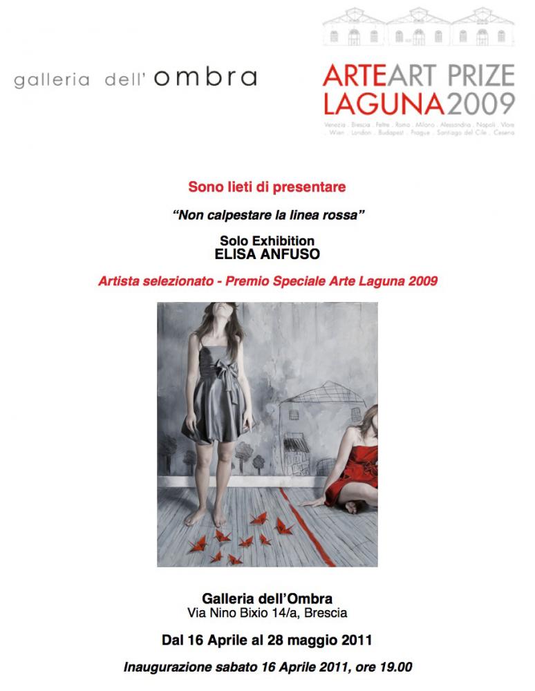 Per tornare all’infanzia, da dove Elisa è partita, la linea-gioco è un facile strumento attraverso cui il bambino si separa dal resto del mondo e inizia così la sua riflessione sull’esserci che lo accompagnerà per tutta la vita. Attraverso delle immagini di grande impatto, in cui la sapienza pittorica gioca un ruolo fondamentale, Elisa Anfuso ci cattura dentro un fragile equilibrio che ci appartiene e che Calvino a parole ha individuato in quella terra di mezzo che c’è tra il suo cavaliere inesistente che sa d’esistere e lo scudiero Gurdulù che esiste ma non lo sa…” (Gabriella Trovato).