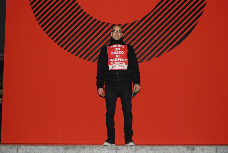 G-BLOCK è un progetto artistico che nasce dall'esigenza di comunicare direttamente con il pubblico, rendendolo parte attiva dell'opera. Ogni G-BLOCK è realizzato in 100 copie (cm140x100) stampate su cartoncino, ognuna delle