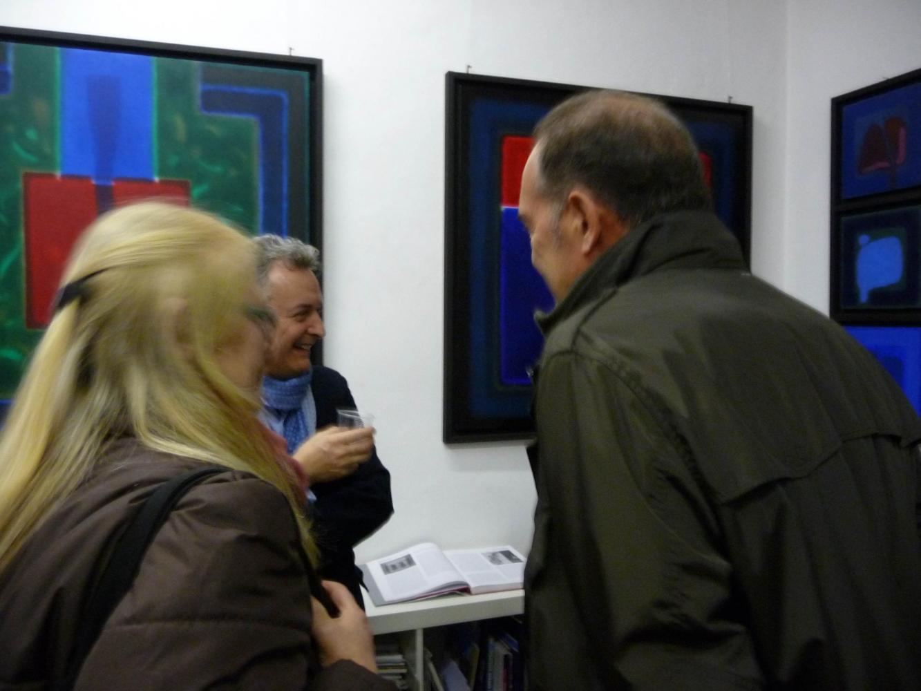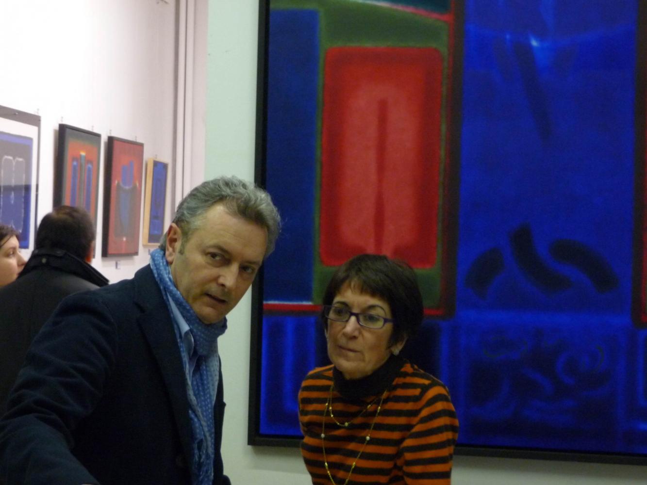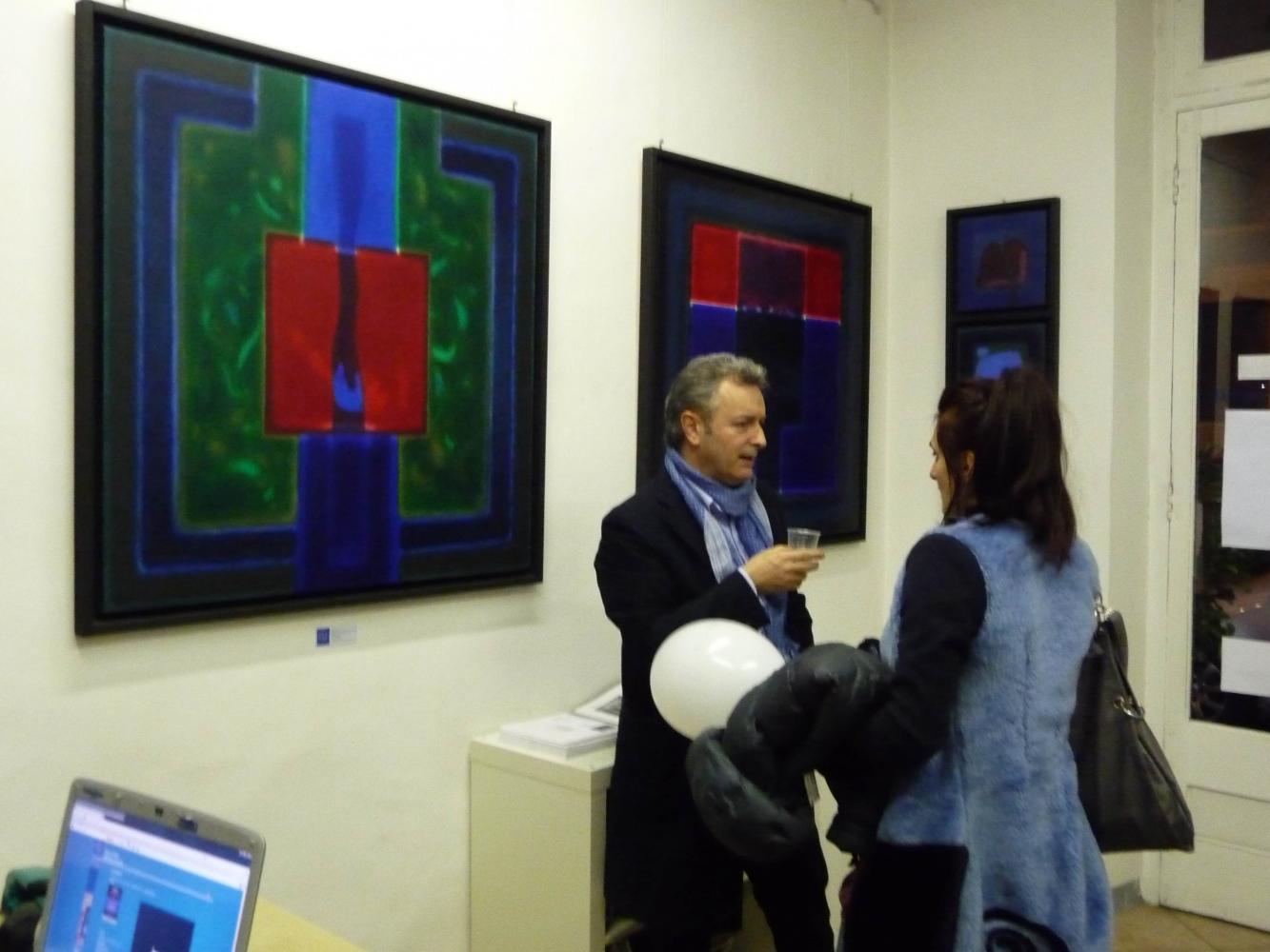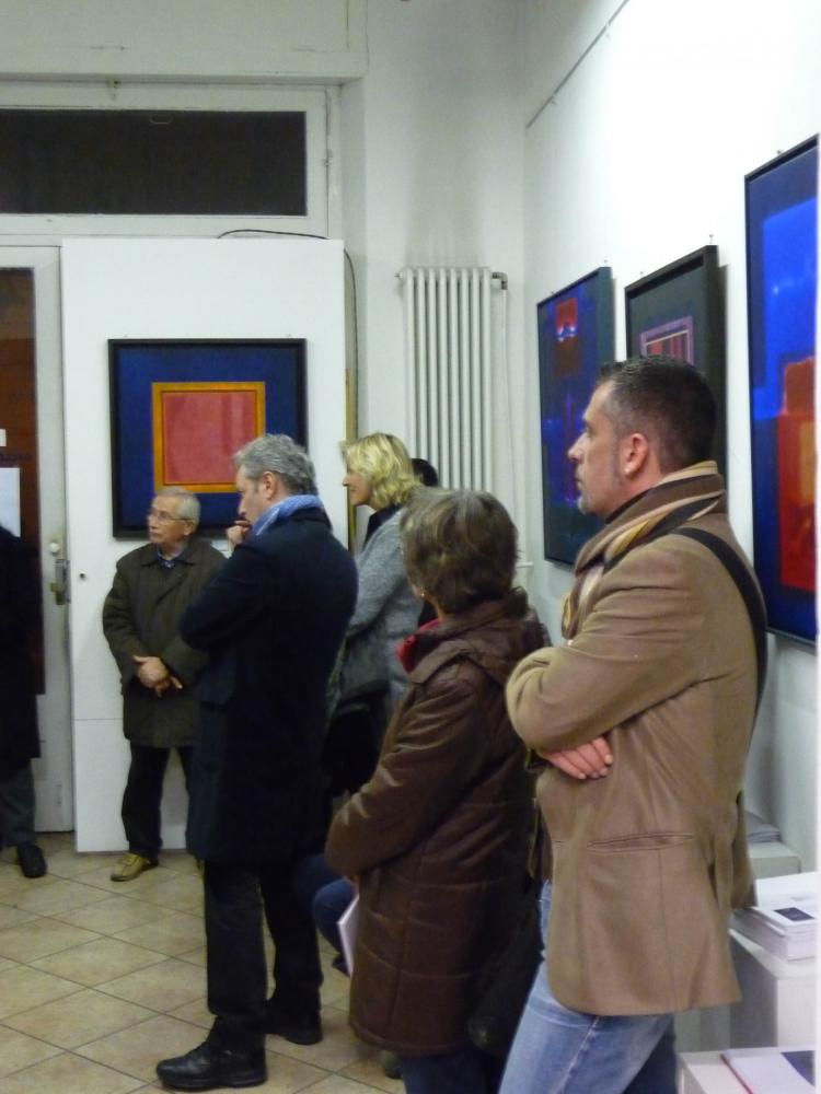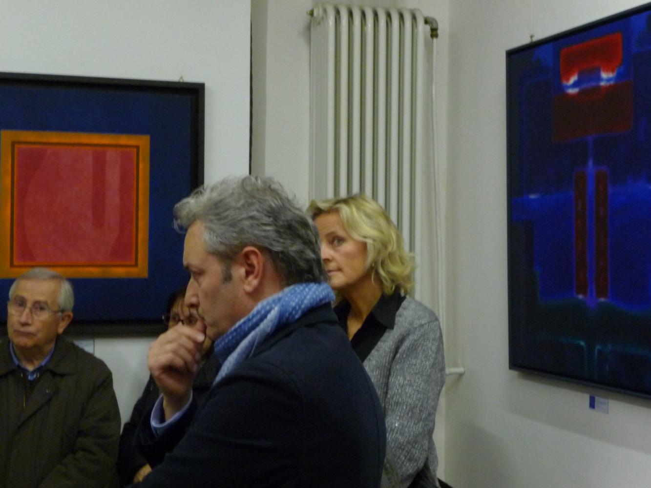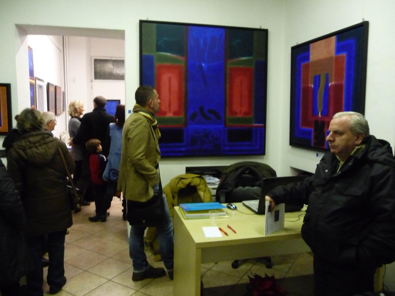 È una mostra in cui si avverte l'intento di dialogo, lontano dalla provocazione ottundente. Si fanno avanti piuttosto ombre e chiarori, silenziose cromie, pause musicali e diafane, riprese di un lavorio pittorico robusto che svolta e comunica in un'estensione vitale. Pare cioè che si crei una tensione avvolgente per chi crea e per chi gli si trova in qualche modo accanto.