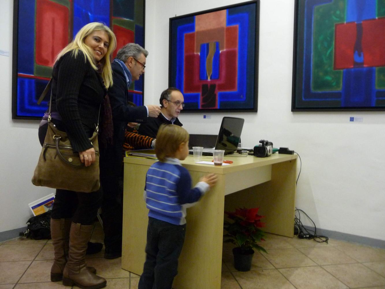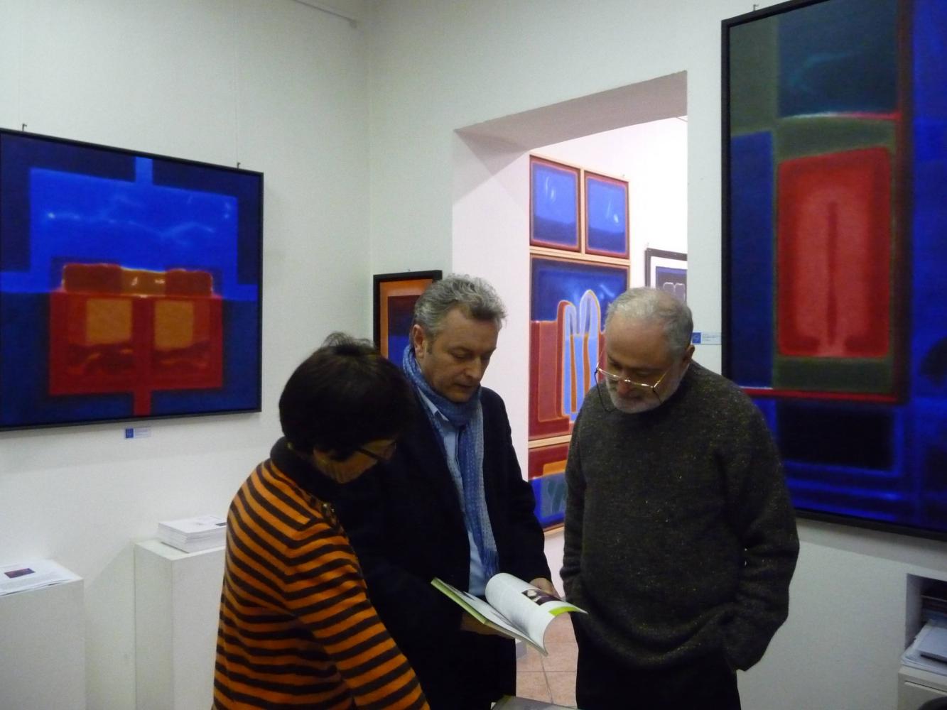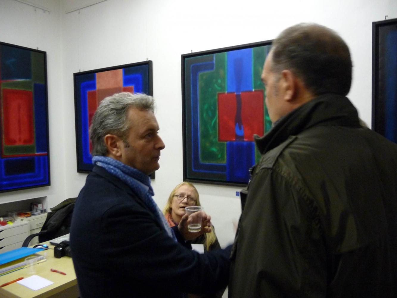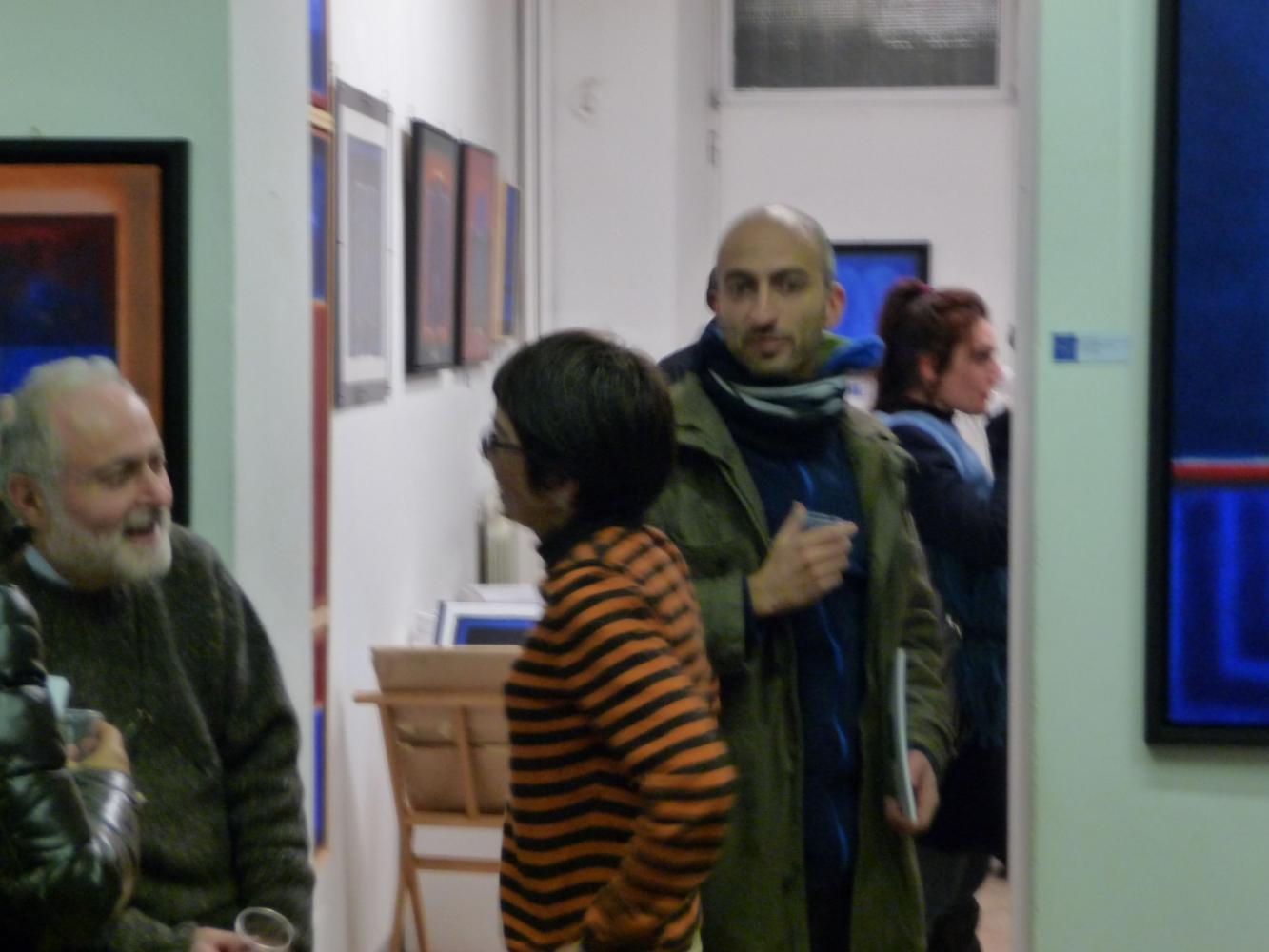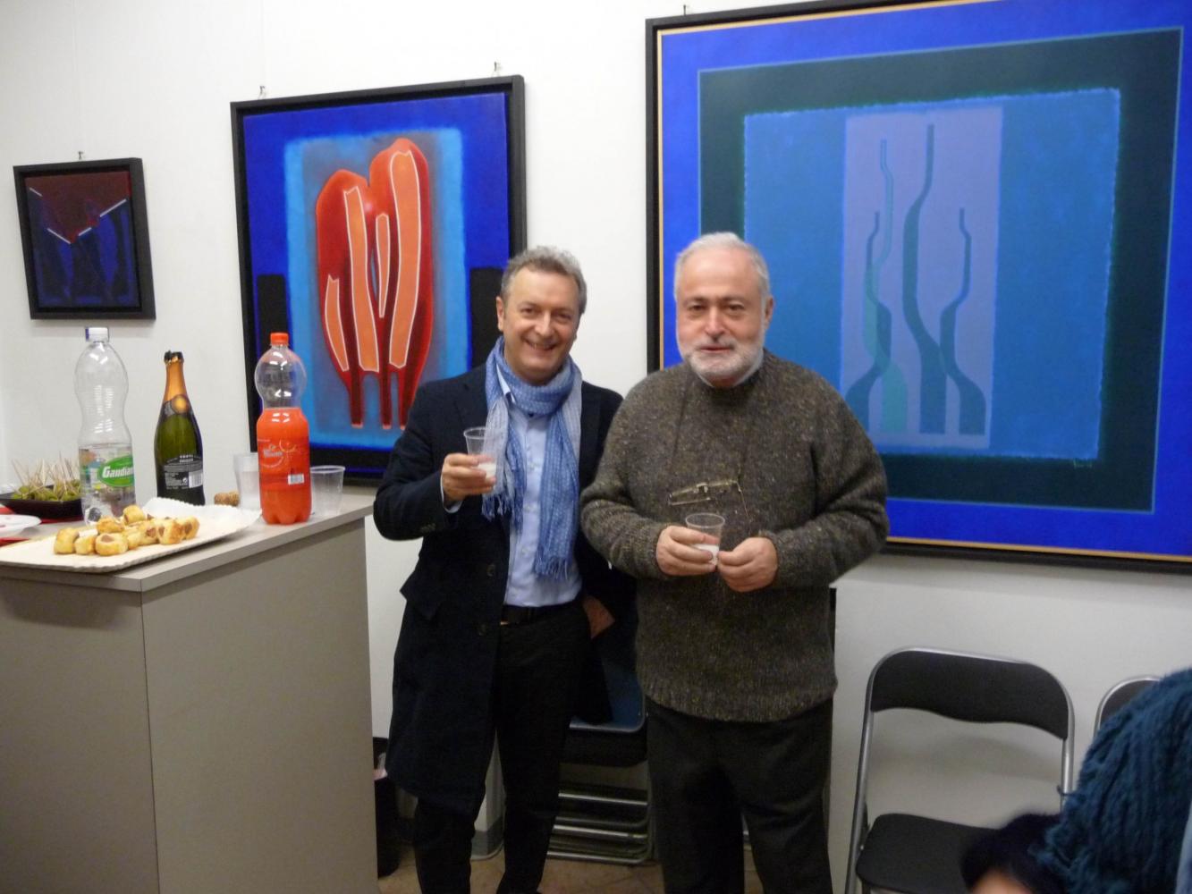 È una mostra in cui si avverte l'intento di dialogo, lontano dalla provocazione ottundente. Si fanno avanti piuttosto ombre e chiarori, silenziose cromie, pause musicali e diafane, riprese di un lavorio pittorico robusto che svolta e comunica in un'estensione vitale. Pare cioè che si crei una tensione avvolgente per chi crea e per chi gli si trova in qualche modo accanto.