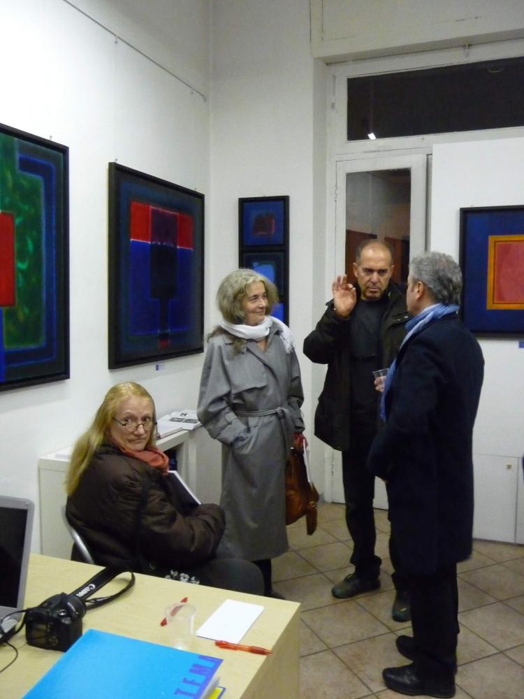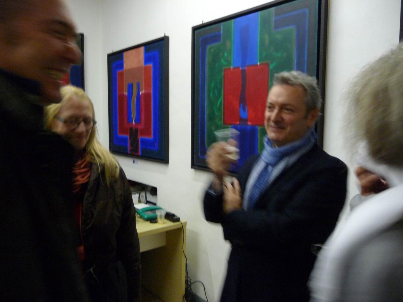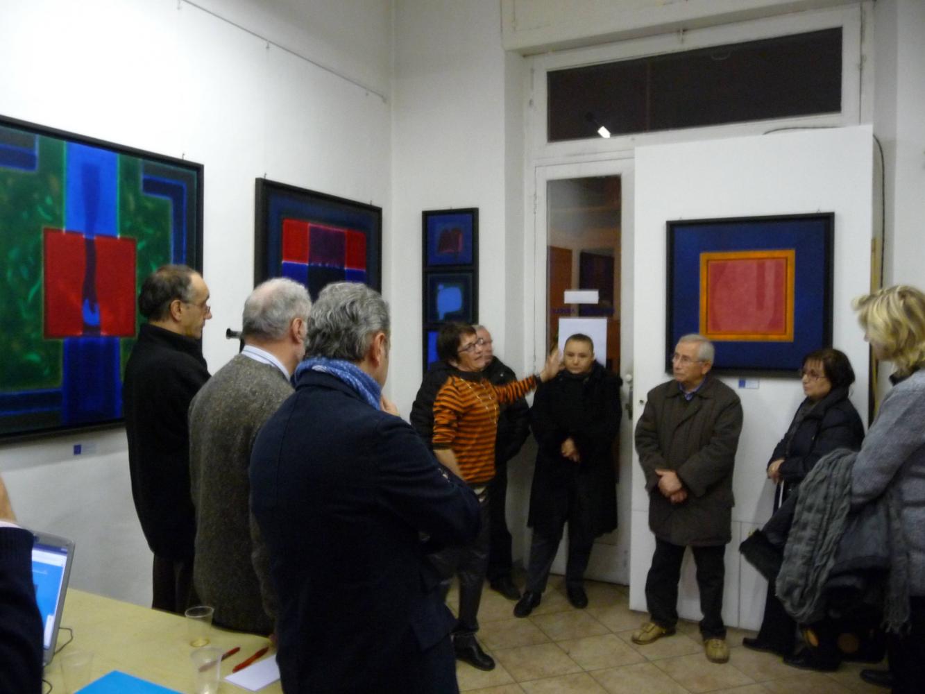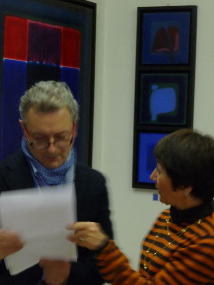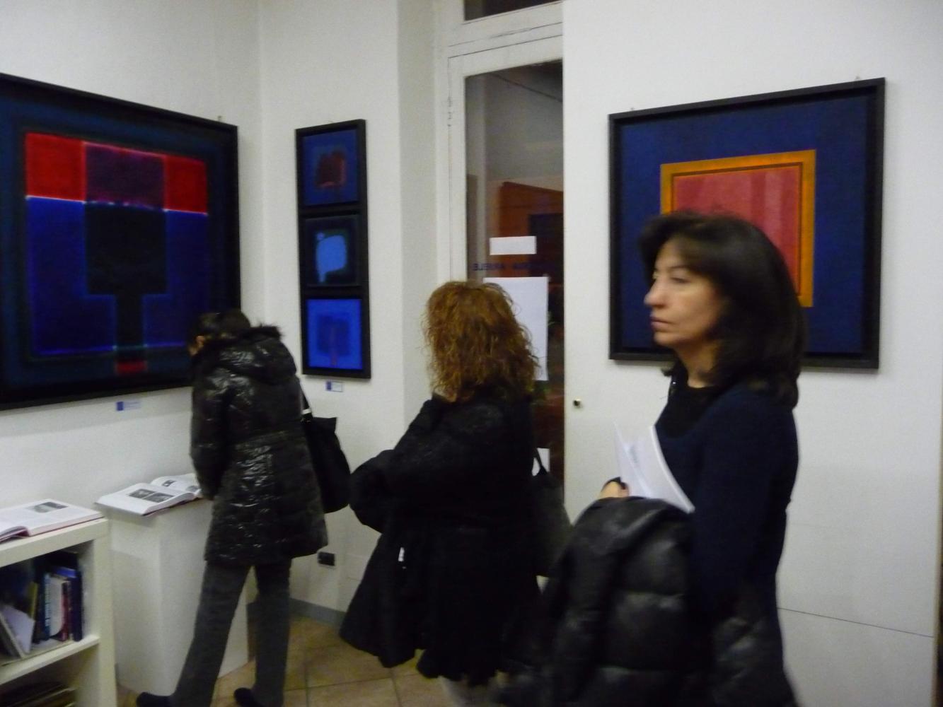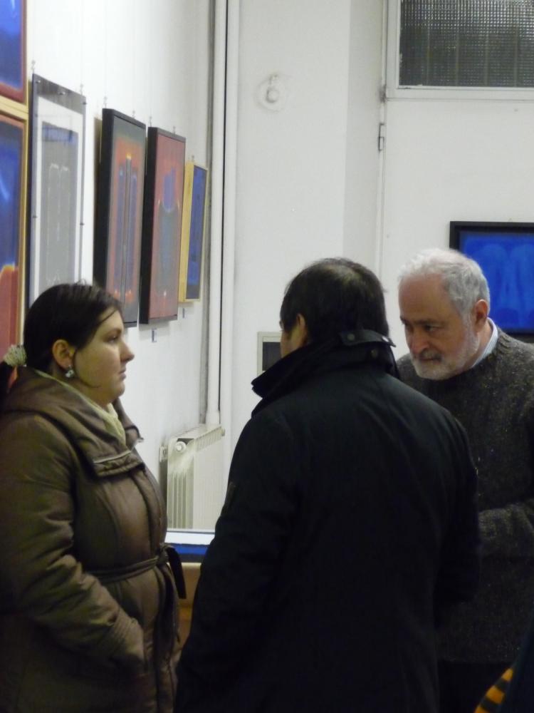 È una mostra in cui si avverte l'intento di dialogo, lontano dalla provocazione ottundente. Si fanno avanti piuttosto ombre e chiarori, silenziose cromie, pause musicali e diafane, riprese di un lavorio pittorico robusto che svolta e comunica in un'estensione vitale. Pare cioè che si crei una tensione avvolgente per chi crea e per chi gli si trova in qualche modo accanto.