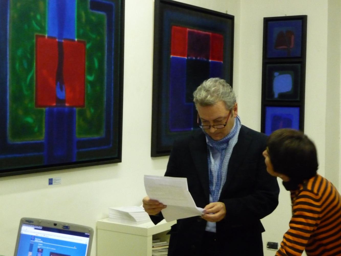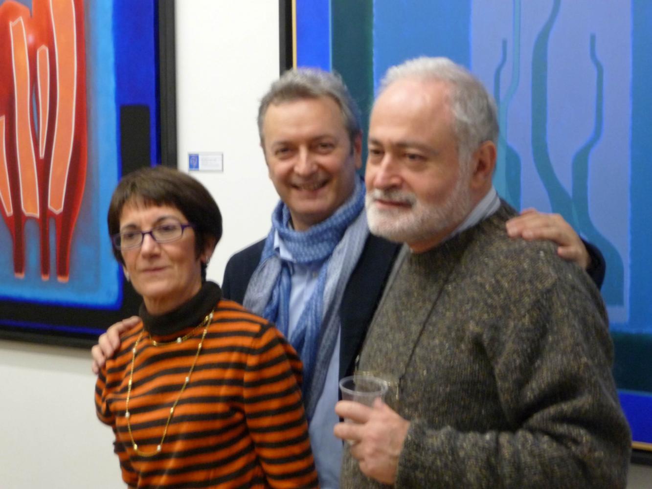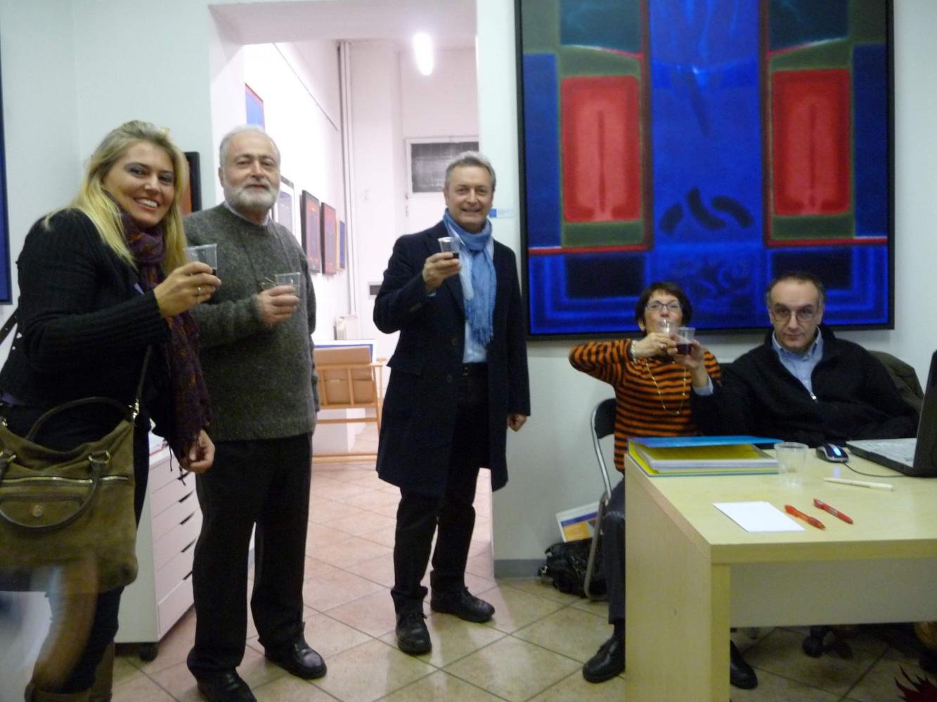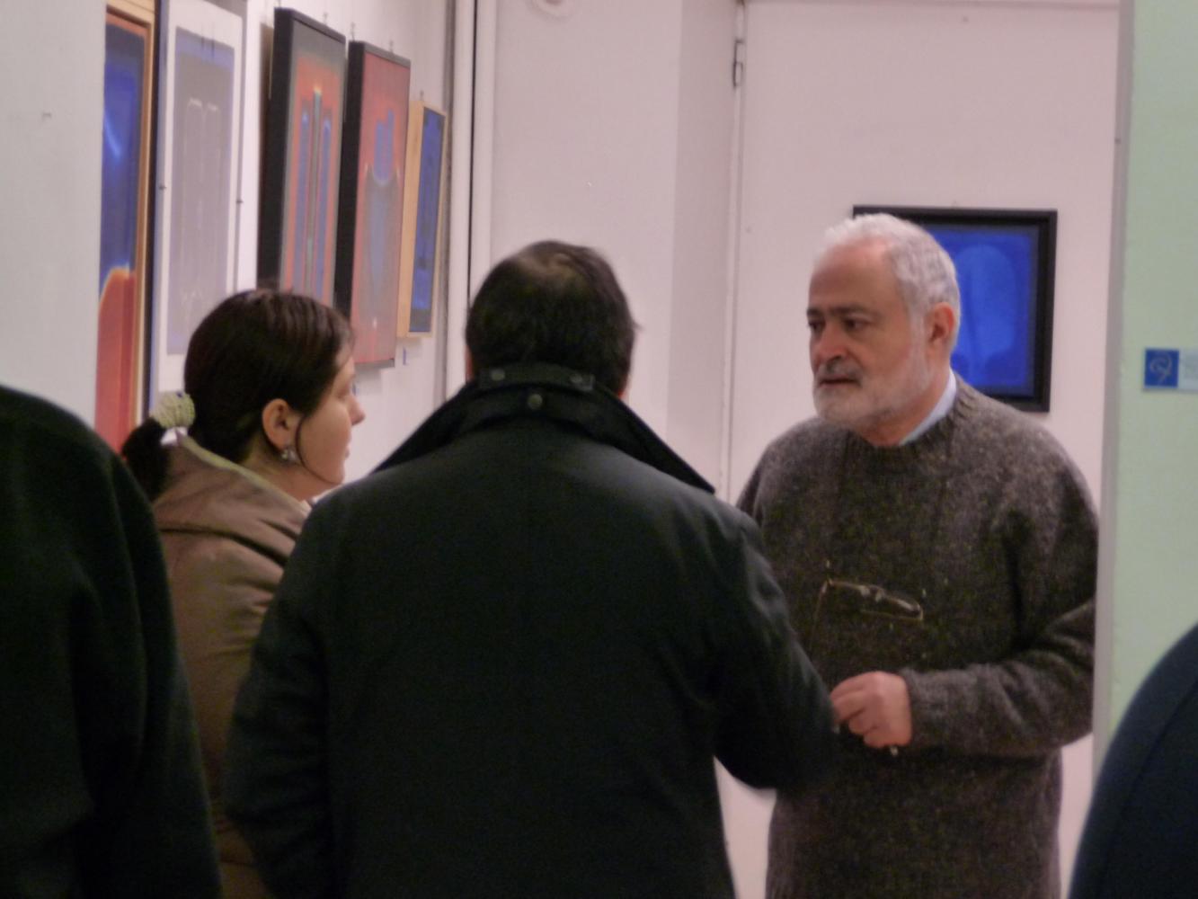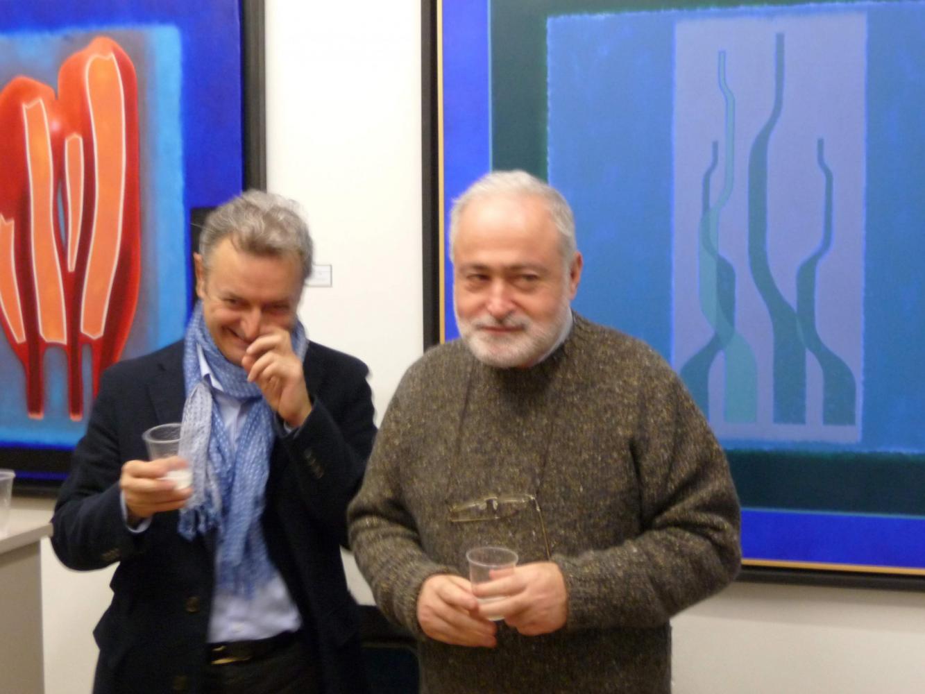 È una mostra in cui si avverte l'intento di dialogo, lontano dalla provocazione ottundente. Si fanno avanti piuttosto ombre e chiarori, silenziose cromie, pause musicali e diafane, riprese di un lavorio pittorico robusto che svolta e comunica in un'estensione vitale. Pare cioè che si crei una tensione avvolgente per chi crea e per chi gli si trova in qualche modo accanto.