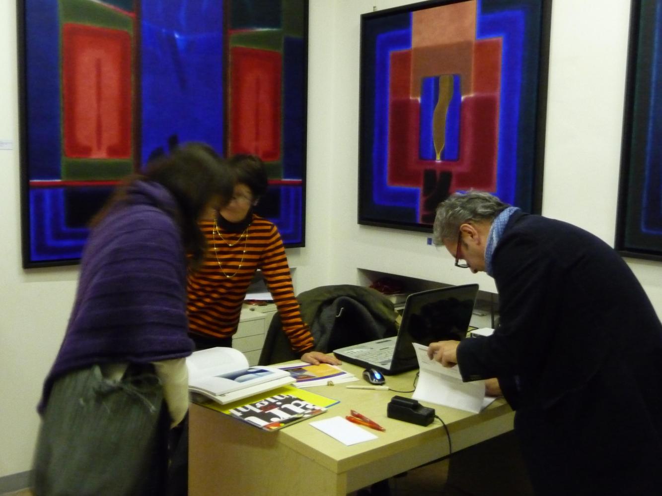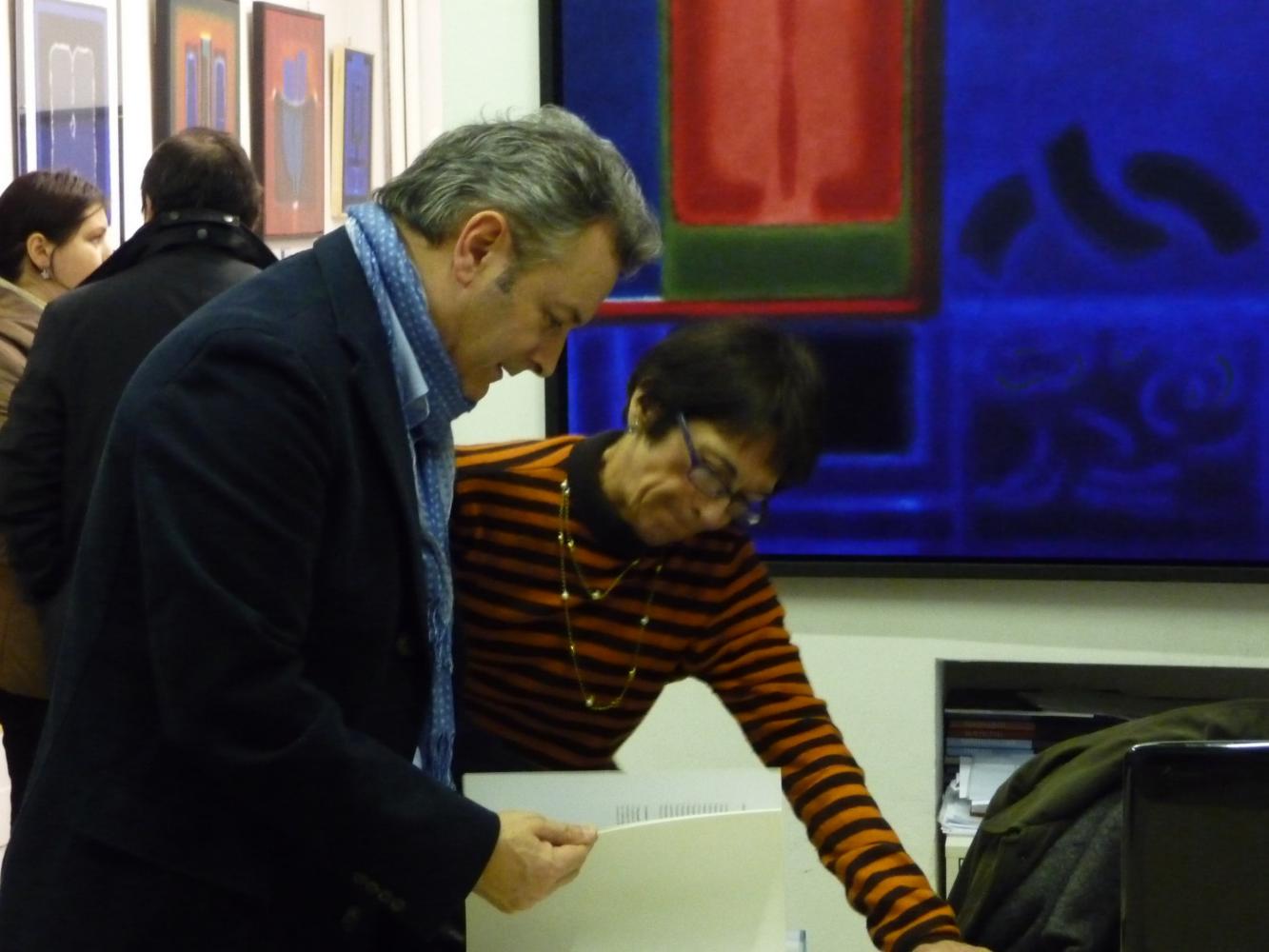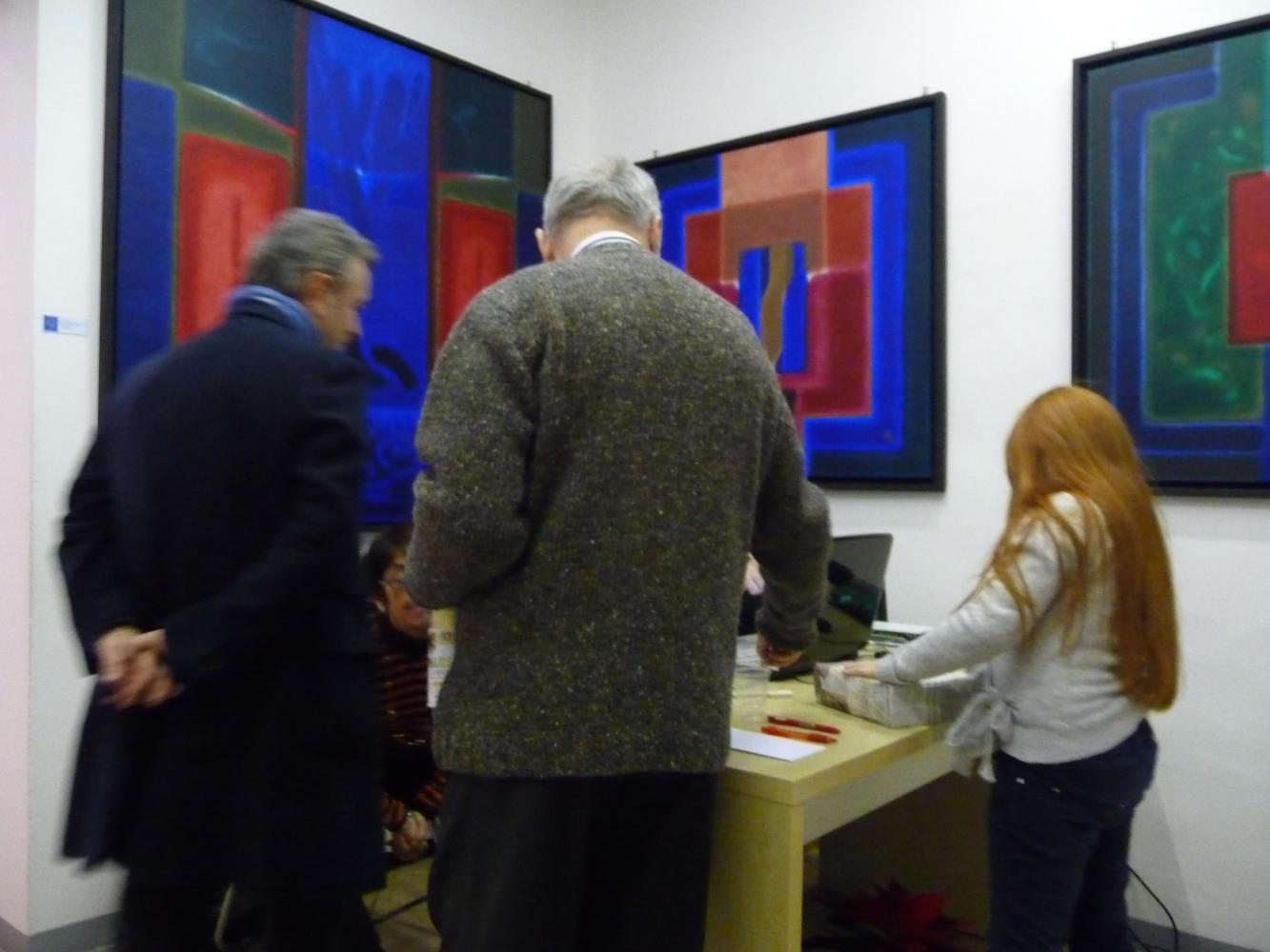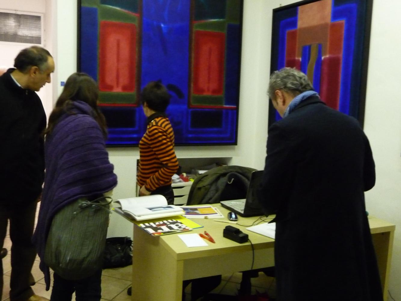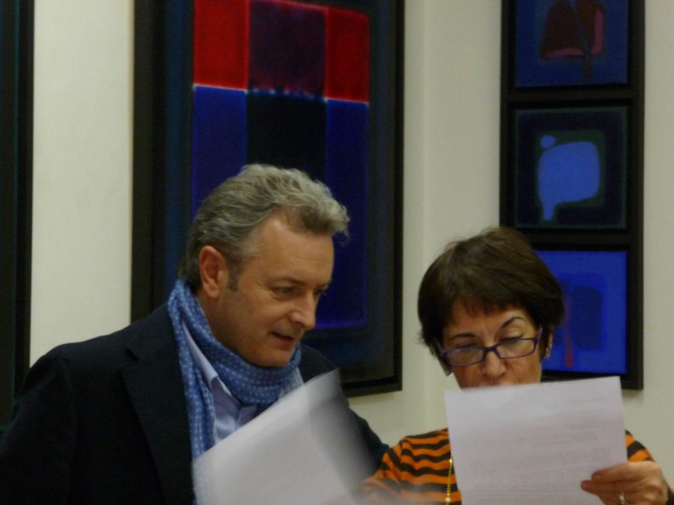 È una mostra in cui si avverte l'intento di dialogo, lontano dalla provocazione ottundente. Si fanno avanti piuttosto ombre e chiarori, silenziose cromie, pause musicali e diafane, riprese di un lavorio pittorico robusto che svolta e comunica in un'estensione vitale. Pare cioè che si crei una tensione avvolgente per chi crea e per chi gli si trova in qualche modo accanto.
