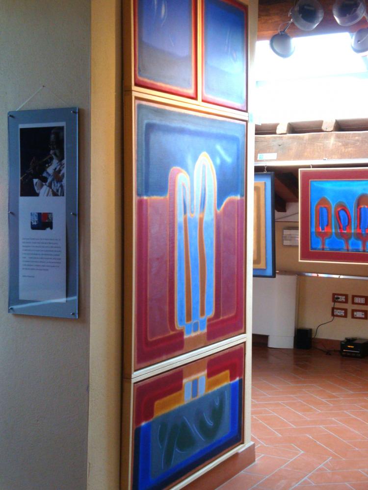 La mia produzione pittorica qui allestita è proprio ispirata dalla sua musica, è “pittura in ascolto, attesa del colore”, cioè un'autentica pausa estetica nella sospensione di ciò che potrebbe accadere.