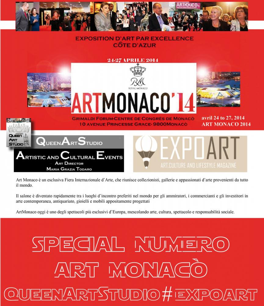 Siamo lieti di informarLa che dal 24 al 27 Aprile 2014 ExpoArt Magazine in collaborazione con QueenArtStudio ,sarà presente ad ArteMONACO’ 2014 presso lo stand espositivo di QueenArtStudio, una delle principali fiere artistiche a livello europeo. In previsione di tale occasione, alfine di fornire maggiore visibilità a tutti quegli artisti che intendono affermarsi sul panorama artistico internazionale, la rivista sarà distribuita a tutte le gallerie presenti in fiera, per questo evento ha progettato una straordinaria offerta, contattaci per avere ulteriori delucidazioni .