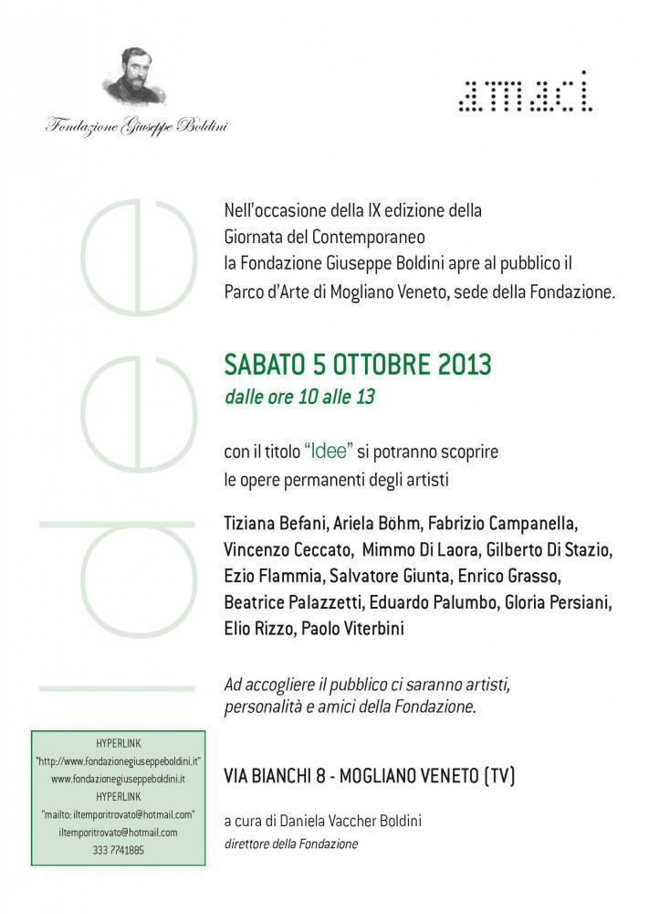 La Fondazione Giuseppe Boldini comunica la partecipazione con AMACI alla IX Giornata del contemporaneo con l'apertura al pubblico del Parco d'Arte della Fondazione in Mogliano Veneto via Bianchi 8.
