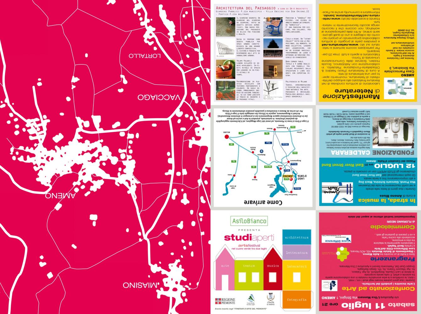 40 spazi aperti al pubblico, sei sezioni (architettura, arte, fotografia letteratura, musica e teatro), oltre 20 artisti, 7 studi di architettura del paesaggio, ospiti internazionali: Studi aperti si trasforma in un vero e proprio festival delle arti, con due giornate di performance e workshop nelle strade, nei giardini e nelle ville di Ameno (No), sulle colline tra il Lago d’Orta e il Lago Maggiore.