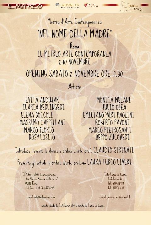 Dal 2 al 10 novembre 2013 si svolge, presso il Mitreo – Arte Contemporanea, la mostra-evento “Nel Nome della Madre” promossa da InAsherah Art, con Roma Capitale, Il Mitreo, Arvalia - Municipio XI, Associazione Iside e organizzata e curata da Inasherah Art nella persona di Lucia Lo Cascio, con la partecipazione del Prof. Claudio Strinati.