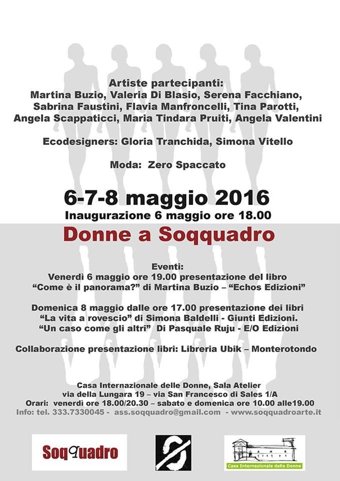 Soqquadro organizza tre giorni di esposizione di Arte, Moda e Design dedicati alle artiste dell’Associazione, nella settimana successiva alla Festa dei Lavoratori del 1° Maggio, perché le partecipanti possano auto-dedicarsi una Festa del Lavoro Creativo delle Donne. L’evento lascia alle Artiste in mostra tutte le possibilità di esprimersi con i propri personali linguaggi, artistici, tecnici e di settori di ricerca, unico comun denominatore è l’appartenenza al genere femminile.