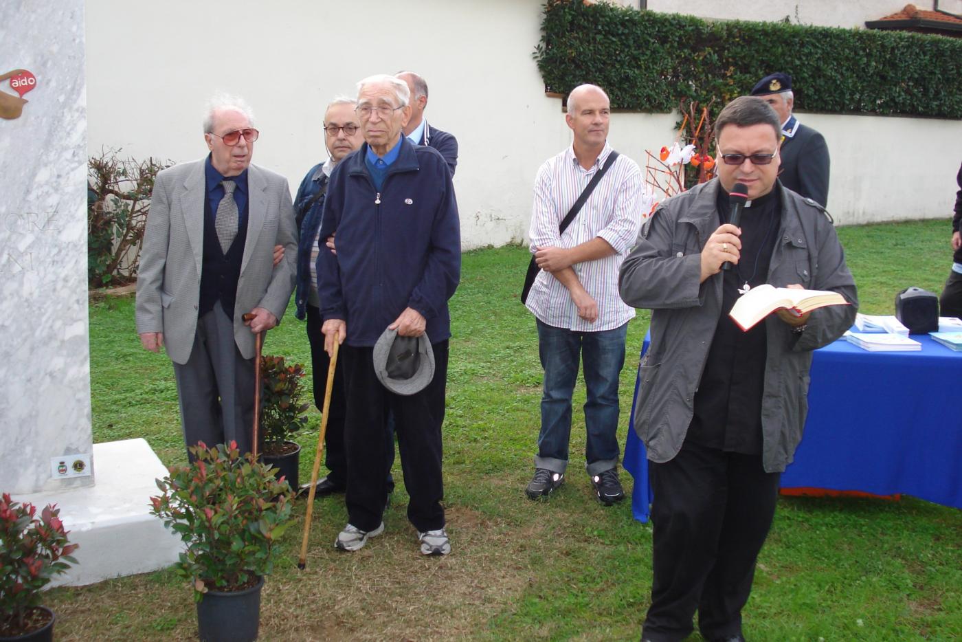 Il Maestro Omar Salvagno ringrazia la Sig.ra Maria Pia Paradisi, promotrice dell' evento, i Sig.ri Soci AIDO Luciano Tassara, Saverio Barbato, Adriano Iacopetti e Marco Salvetti, il Presidente AIDO Sig. Alberto Indelitali, il Rag. Enrico Cruciani, gli artigiani ed i titolari delle aziende impegnati nella realizzazione di questa gioiosa opera.