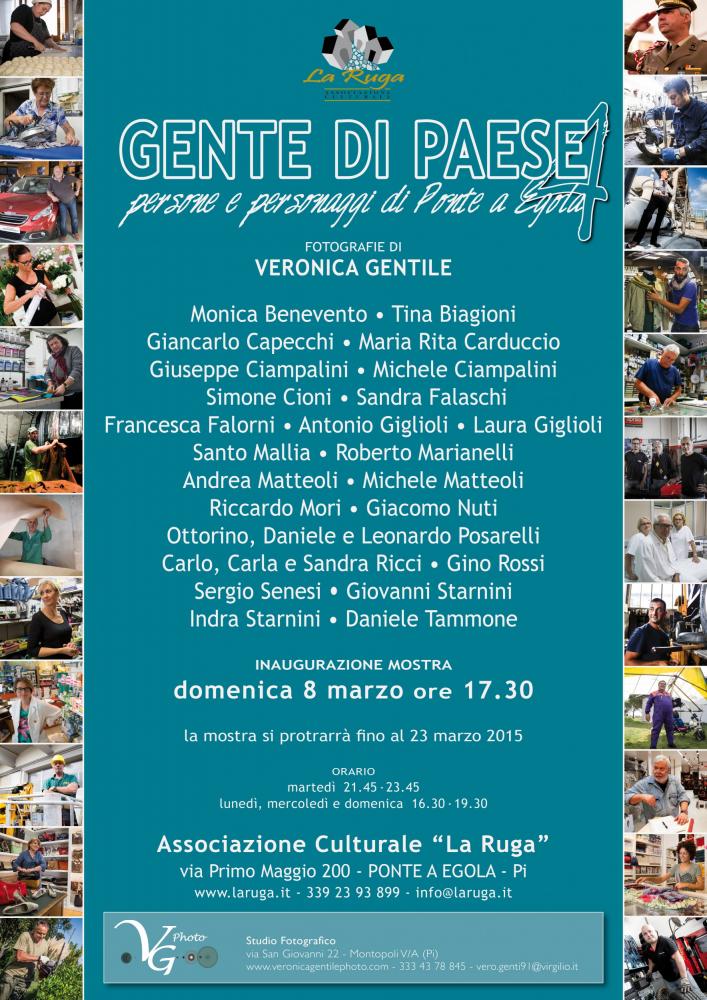 PONTE A EGOLA Torna dopo le prime tre edizioni, a un anno di distanza, la fortunata rassegna fotografica "Gente di paese" dedicata alle persone e ai personaggi di Ponte a Egola. Nel 2011 è iniziato questo percorso ricognitivo, che non è altro che un racconto per immagini, il racconto di un paese attraverso le persone che lo vivono quotidianamente con i loro mestieri e le loro attività, ogni anno immortalati dagli scatti di un fotografo diverso. Quest’anno le foto sono di Veronica Gentile, giovane fotografa amatoriale ponteaegole, classe 1991.