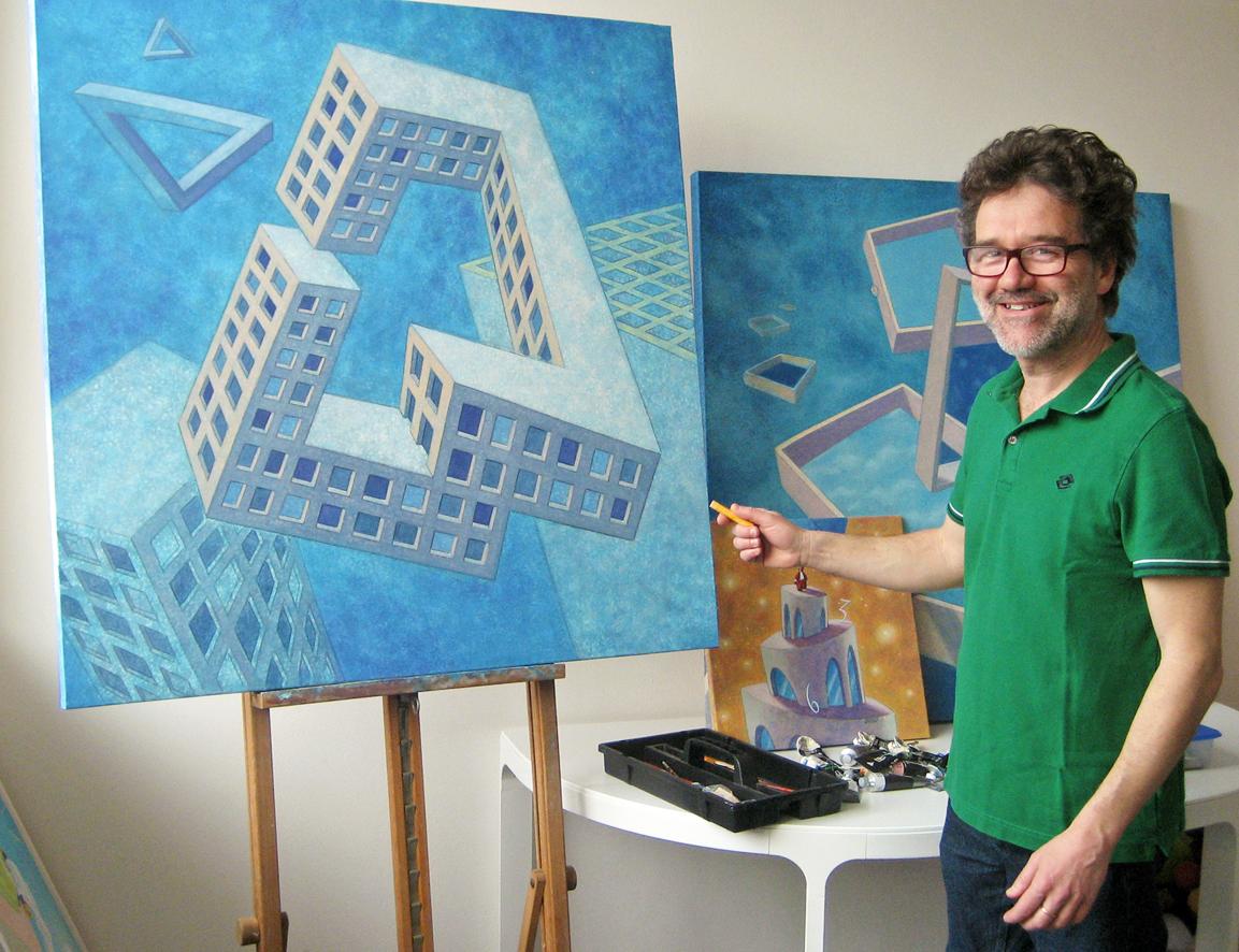 Fervente sostenitore ed audace divulgatore della Patafisica, mette in luce e sottolinea l’esistenza di un mondo parallelo, frequentato da quei personaggi antropomorfi che popolano i suoi dipinti sempre in bilico sulle decisioni da prendere. Un mondo del tutto astratto, quasi spirituale”.