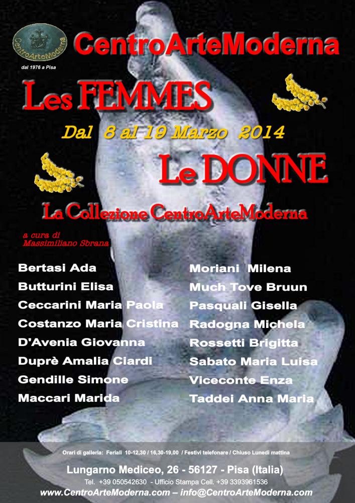 Si apre al pubblico SABATO 8 Marzo 2014 presso il GAMeC CentroArteModerna di Pisa (sul Lungarno Mediceo al numero 26) la mostra "Les Femmes" che,ordinata e curata da Massimiliano Sbrana, raccoglie le opere di importanti artiste italiane ed europee che nel corso di quasi quaranta anni di attività hanno esposto negli spazi espositivi di questo storico spazio espositivo pisano.