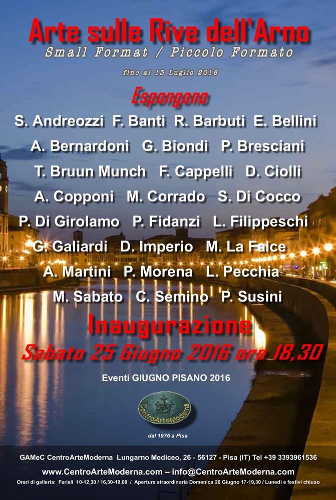 Si inaugurerà Sabato 25 Giugno 2016 alle ore 18,30 presso il GAMeC CentroArteModerna di Pisa (Lungarno Mediceo,26), a cura Massimiliano Sbrana, la rassegna ARTE SULLE RIVE DELL'ARNO edizione 2016 dedicata ad opere di piccolo formato.