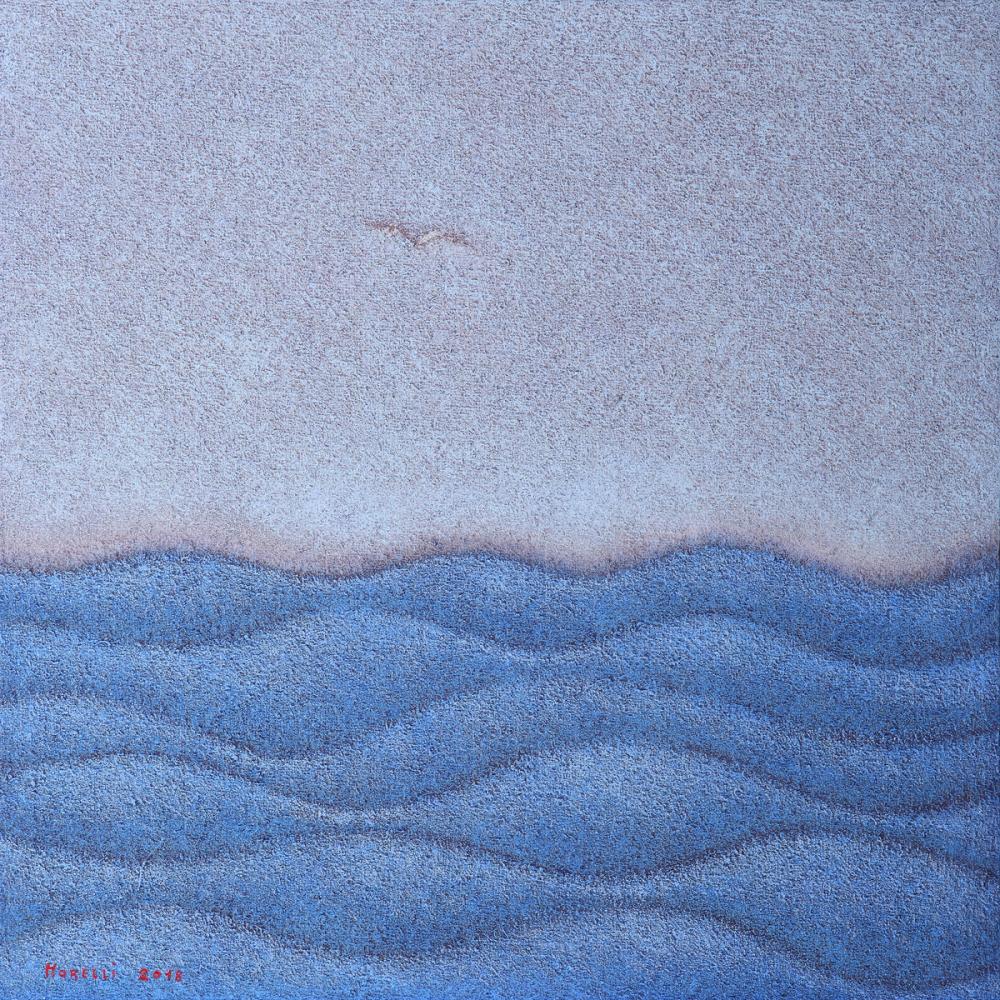 In esposizione un ciclo di recenti oli su tela. Si tratta di raffinati lavori dall’impronta materica, nei quali sono raffigurati sintetici paesaggi marini: questi ultimi non sono però evocazioni di luoghi reali, bensì composizioni in cui ciò che conta è la ricerca di una forma fondata su un gioco di rispondenze e su un equilibrio di spazi. Quella di Morelli è una pittura ‘mentale’, in cui è accentuata la dimensione della memoria: l’artista si concentra su un linguaggio psicologico del dipinto, allontanandosi dagli aspetti descrittivi e mirando a una pura fusione di cromatismi e luminosità.