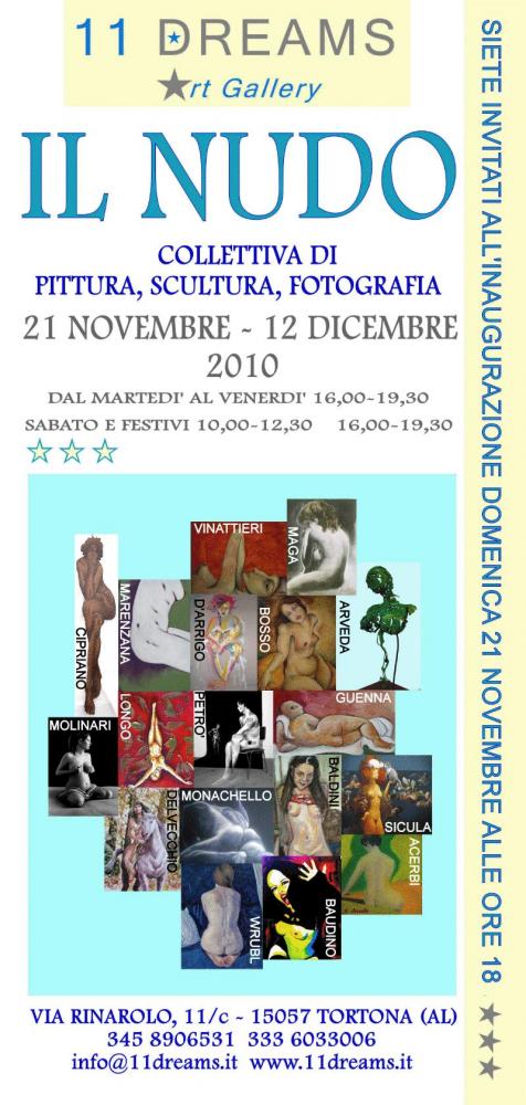 In concomitanta con l'apertura ufficiale della galleria 11Dreams di Tortona viene inaugurata la mostra collettiva di pittura,scultura e fotografia,con il titolo"Il nudo".
