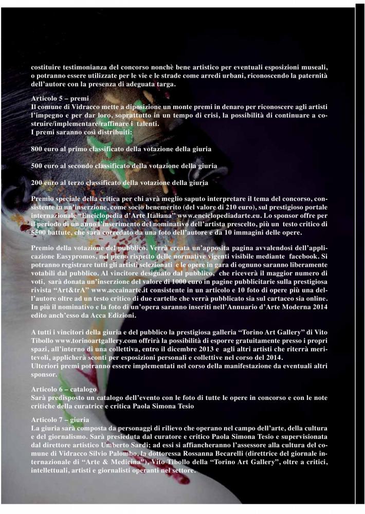 Sarà predisposto un catalogo dell’evento con le foto di tutte le opere in concorso e con le note critiche della curatrice e critica Paola Simona Tesio