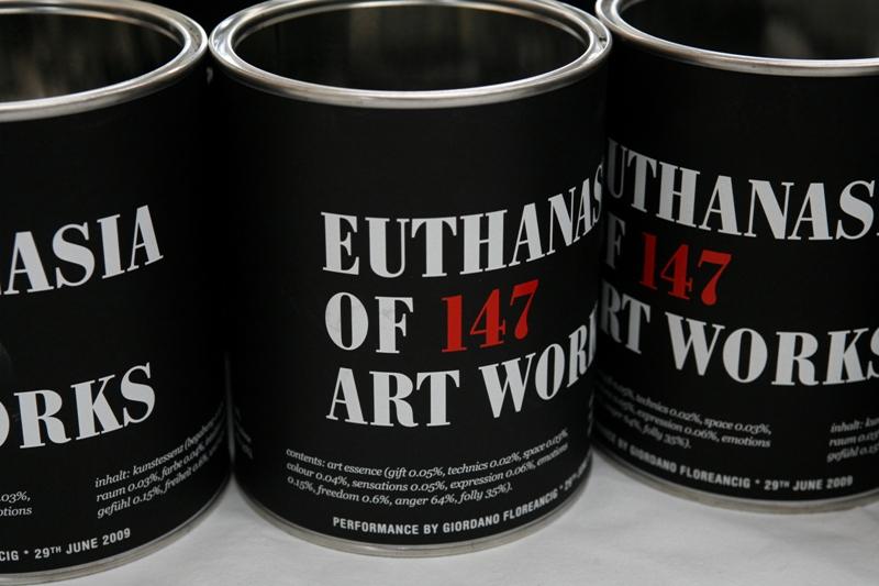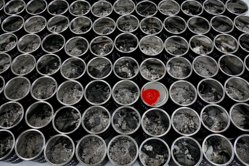 L’artista ci ha nuovamente stupito con le sue follie! Ha raccolto le ceneri in 147 contenitori, sigillati con ceralacca, firmati e numerati per i collezionisti.